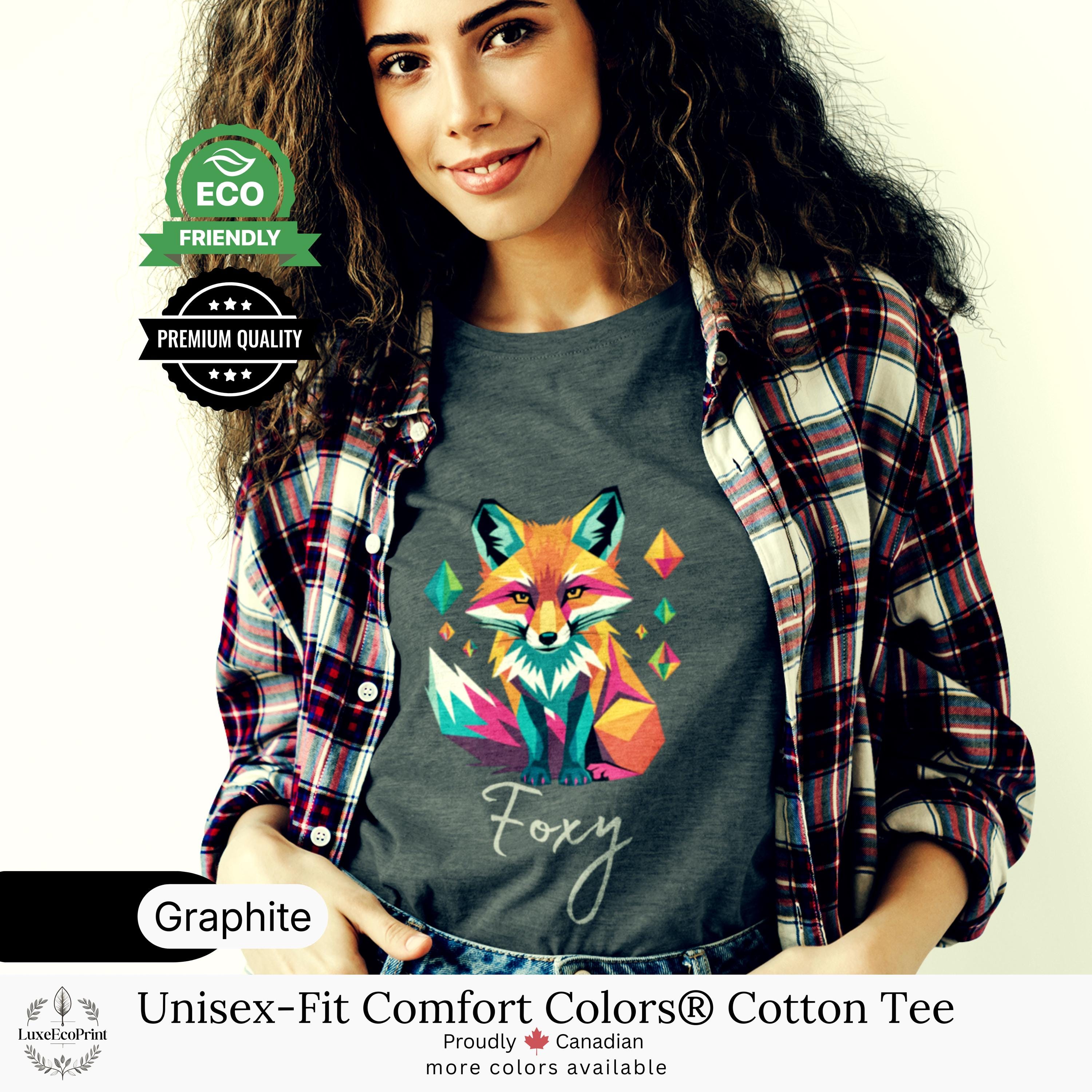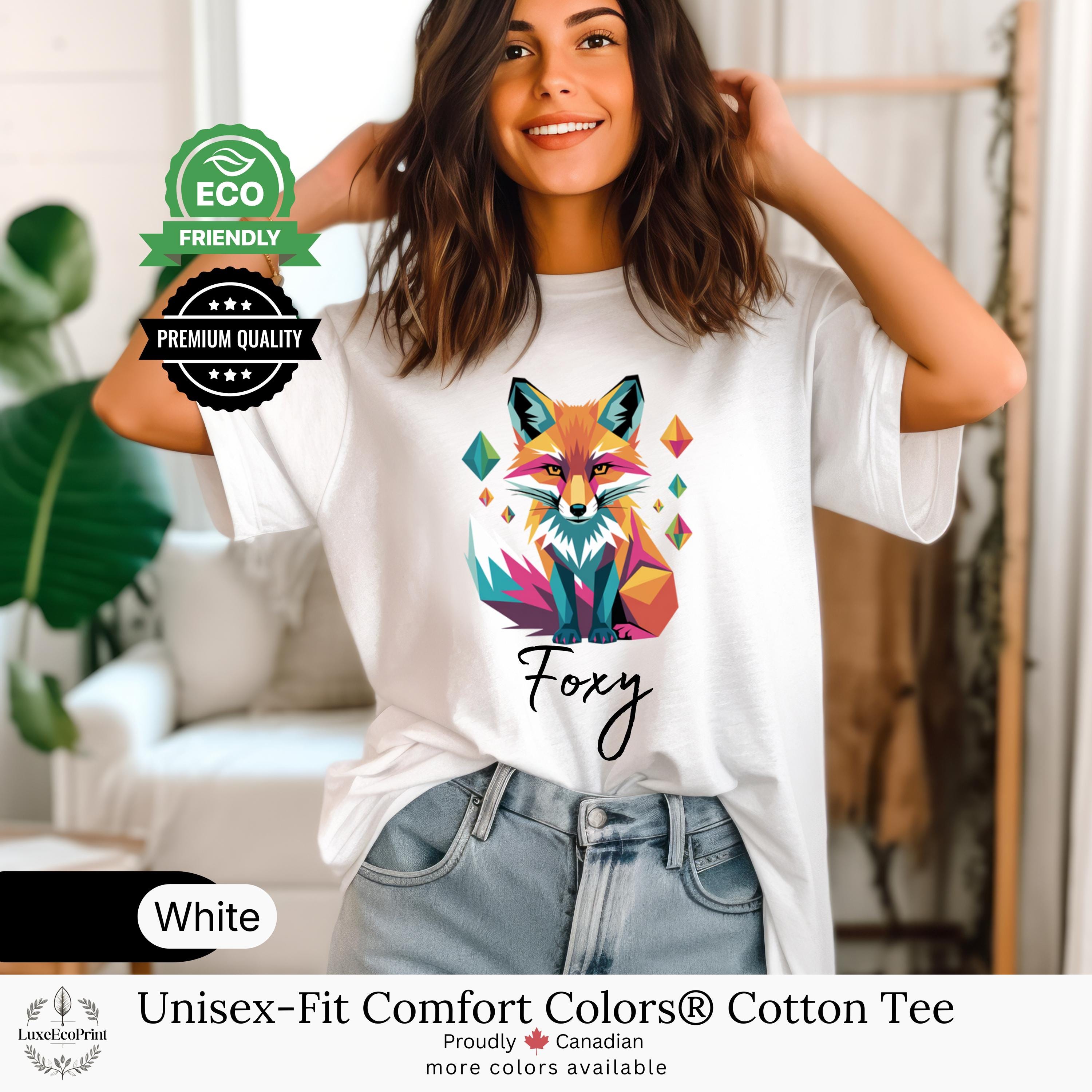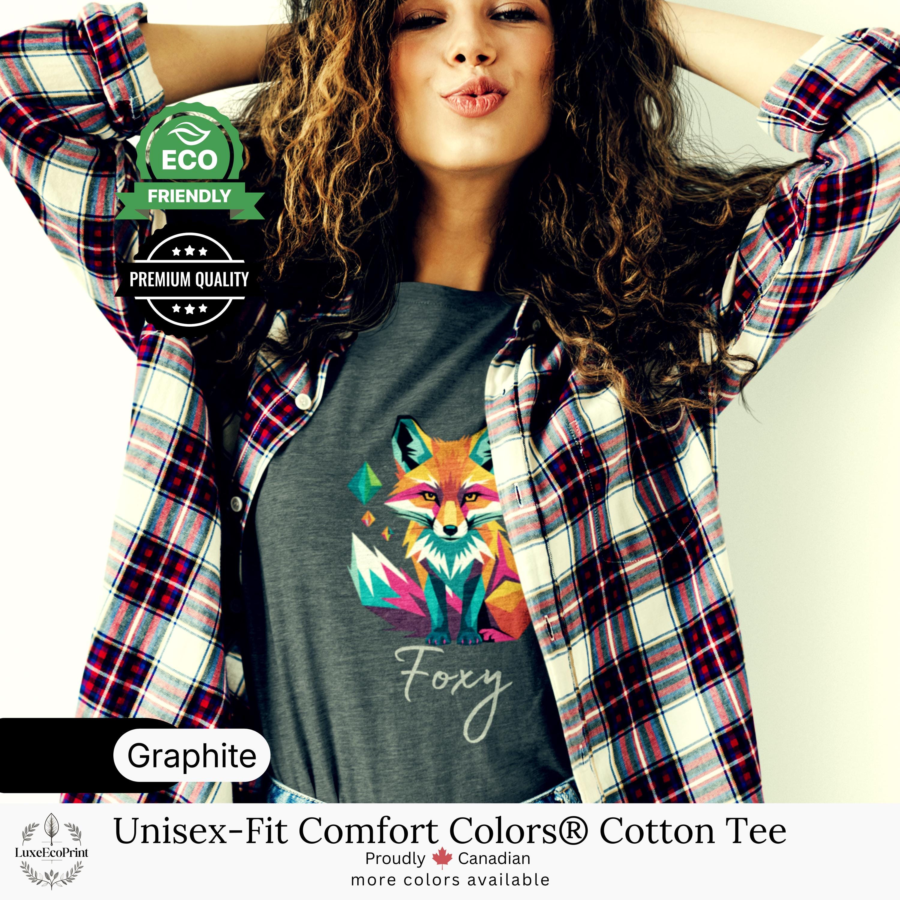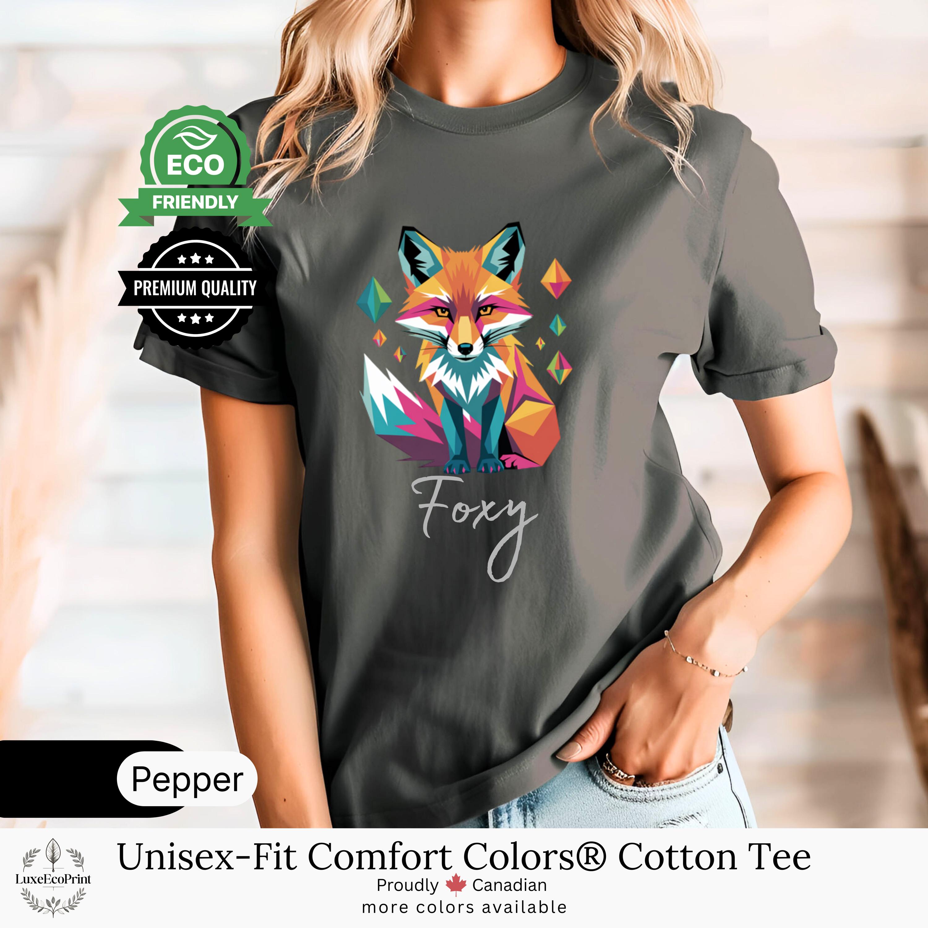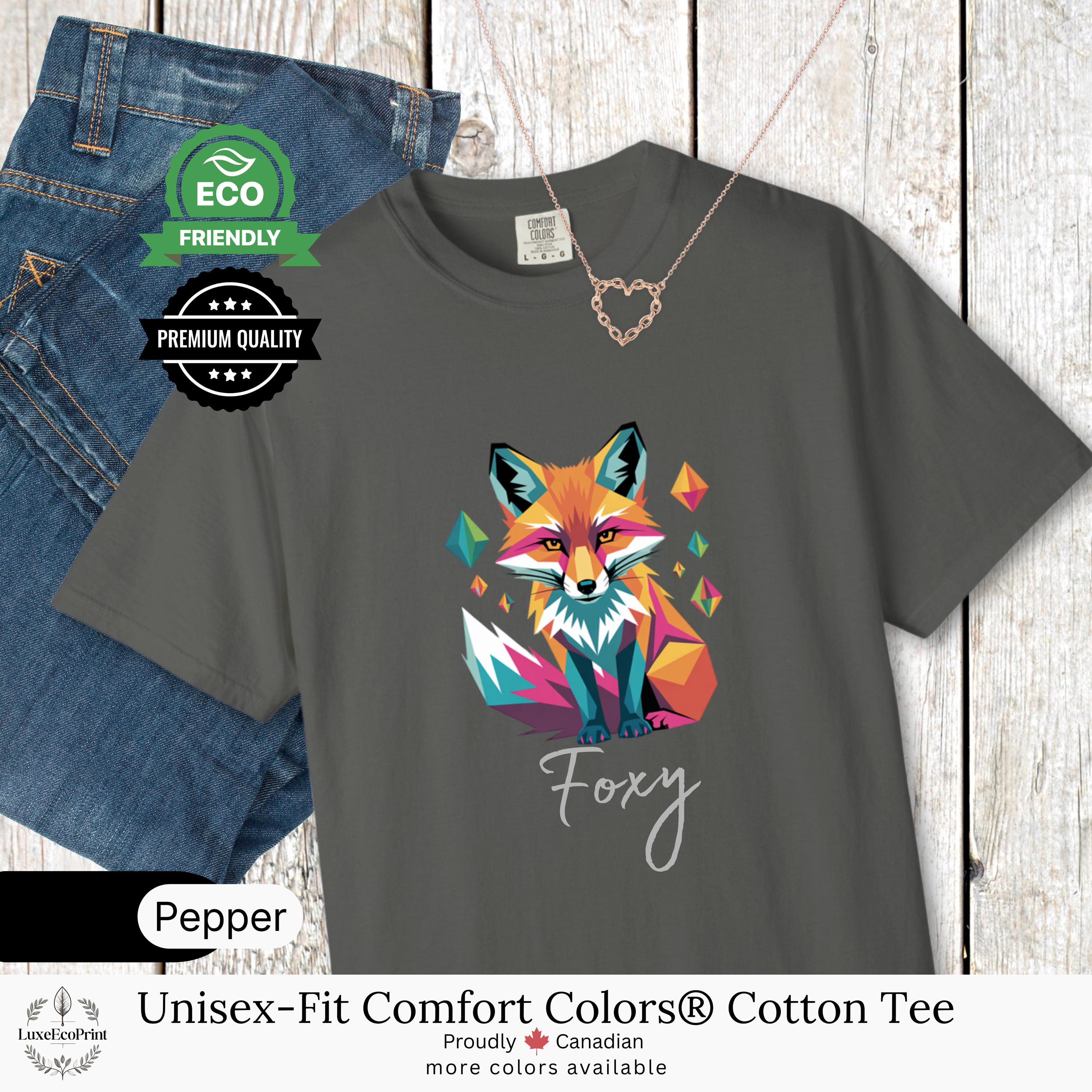 This unisex-fit Comfort Colors® cotton t-shirt features a vibrant geometric fox illustration with the word “Foxy” - a playful, premium-quality essential that blends bold art with laid-back Canadian fashion.