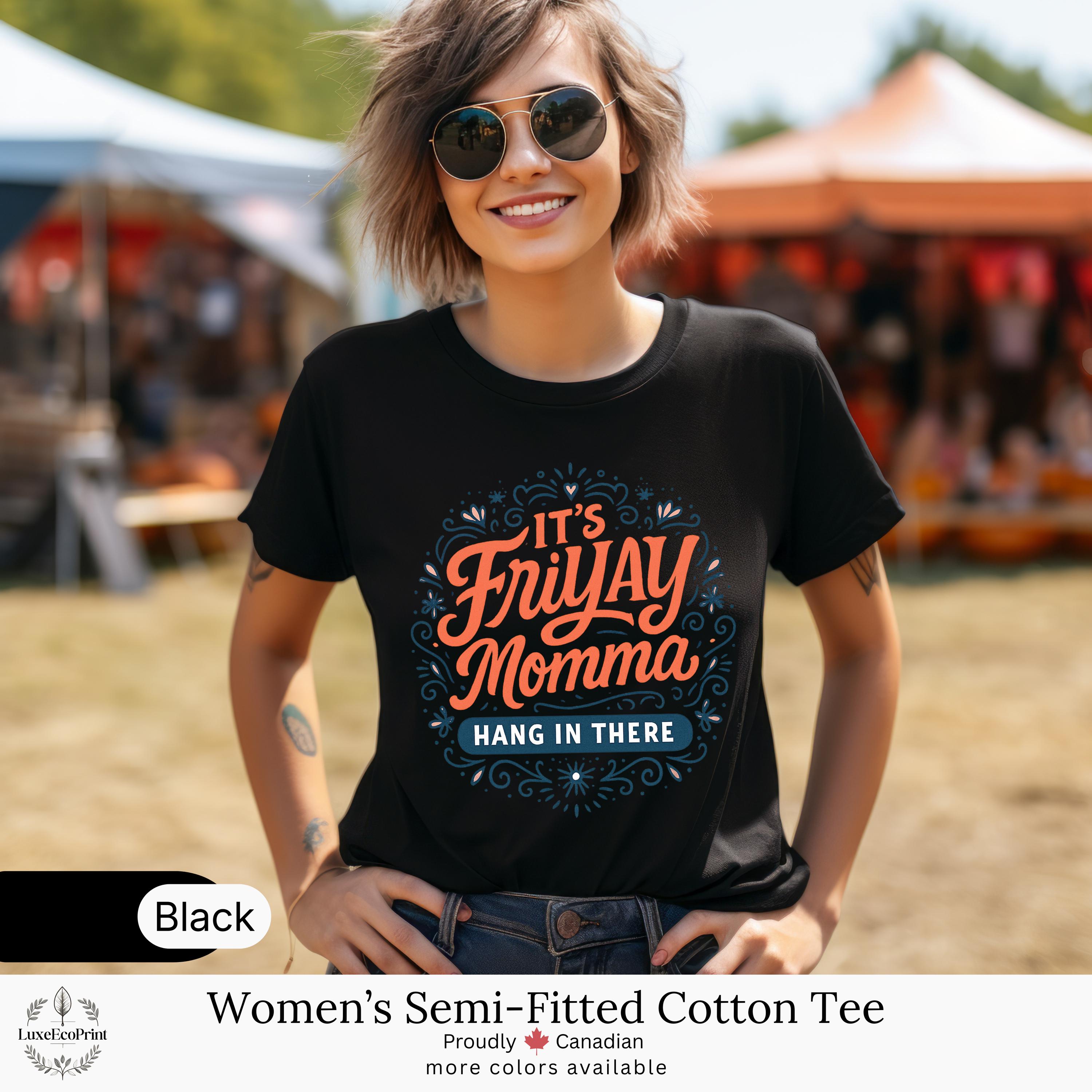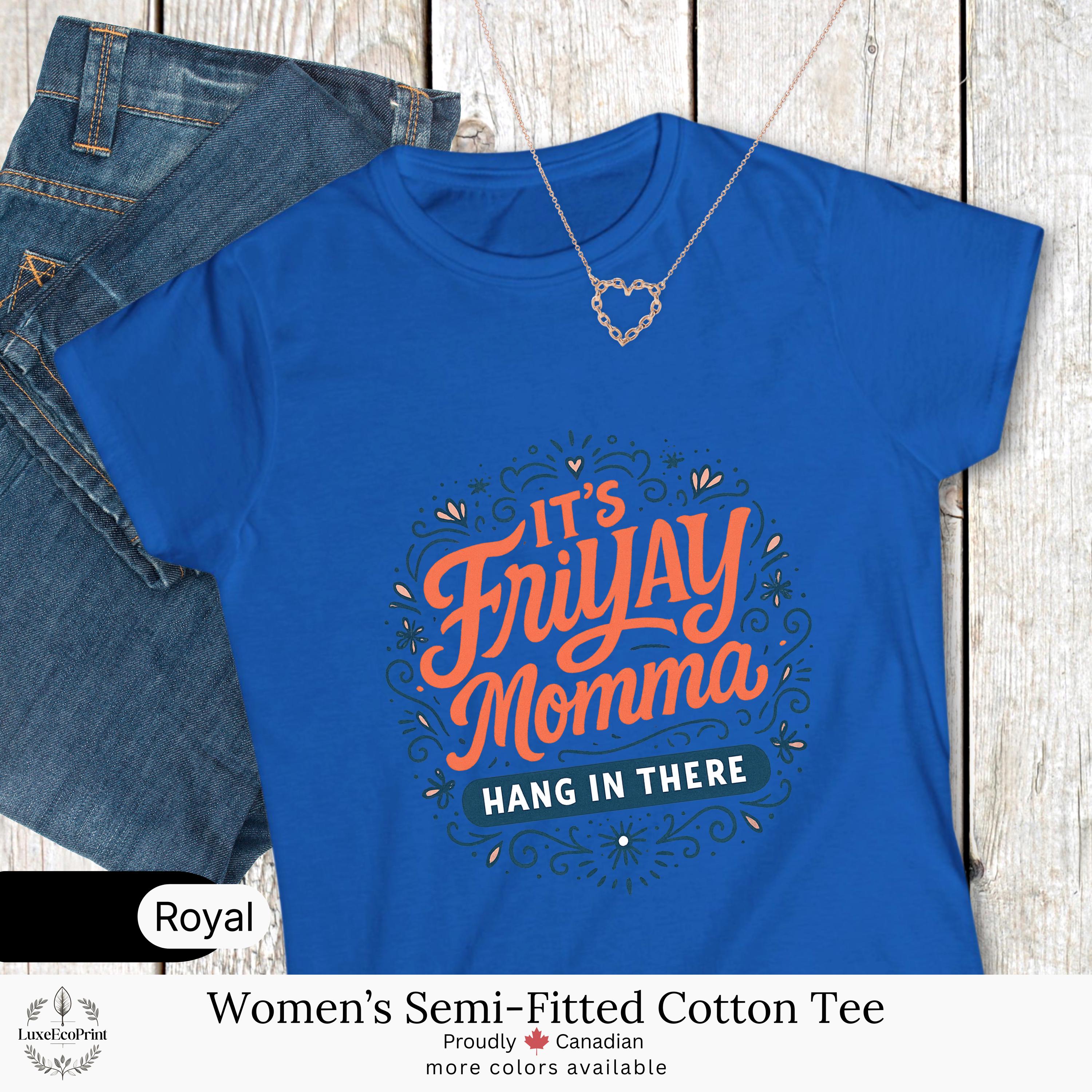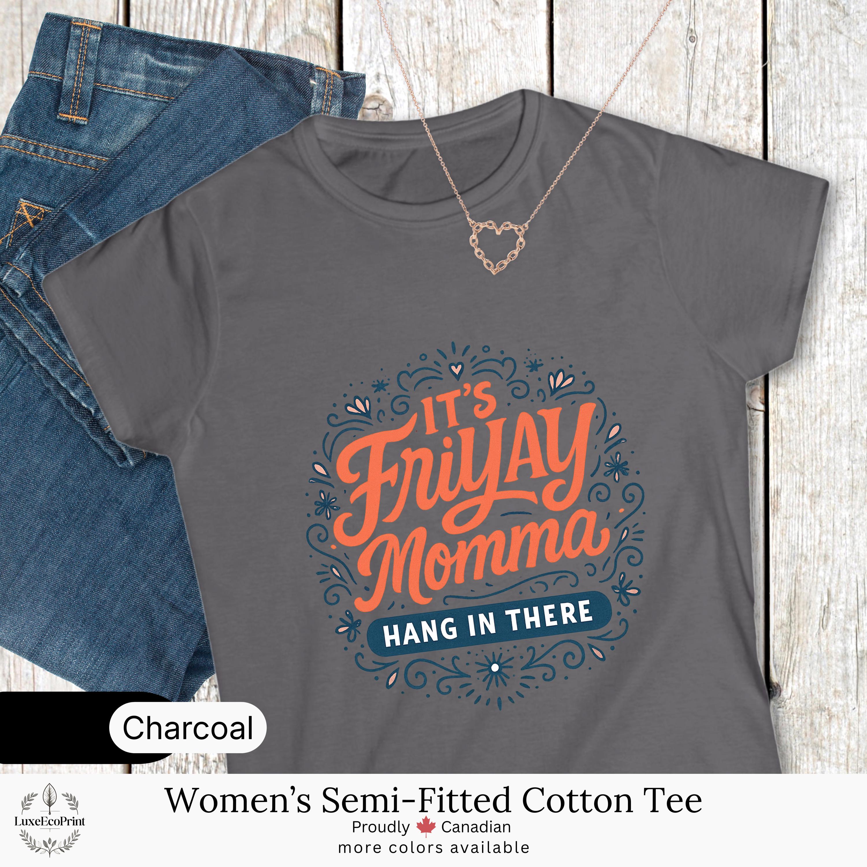 This women’s semi-fitted cotton t-shirt features an uplifting “Weekend Vibes” motivational quote, blending comfort with style for everyday Canadian fashion.