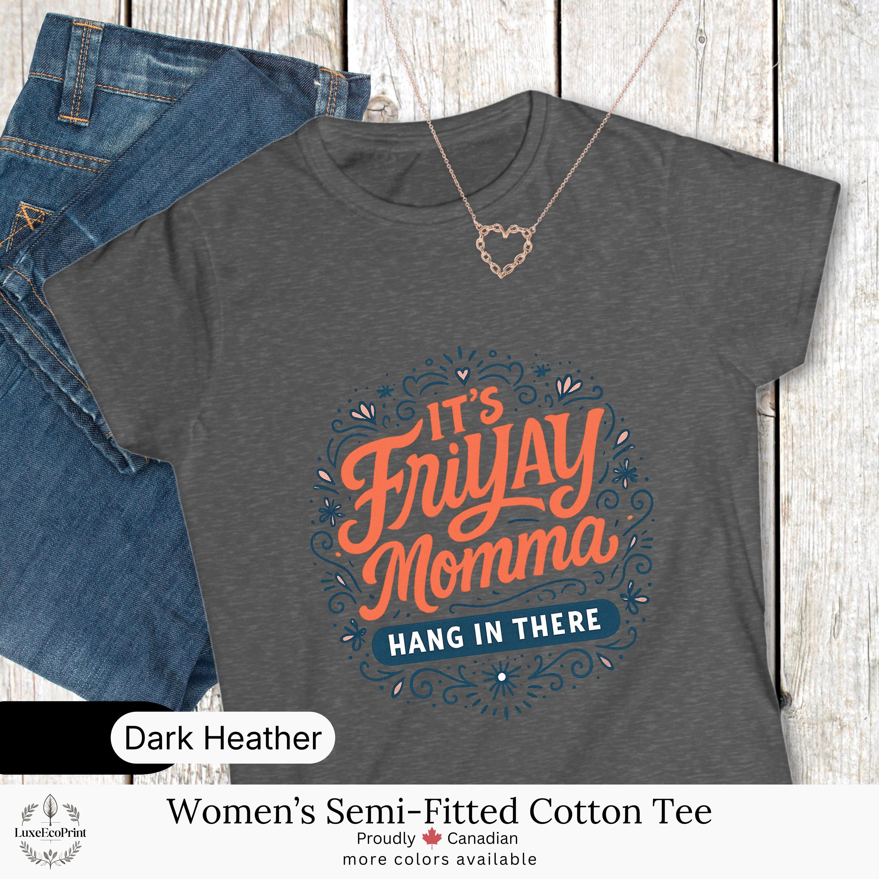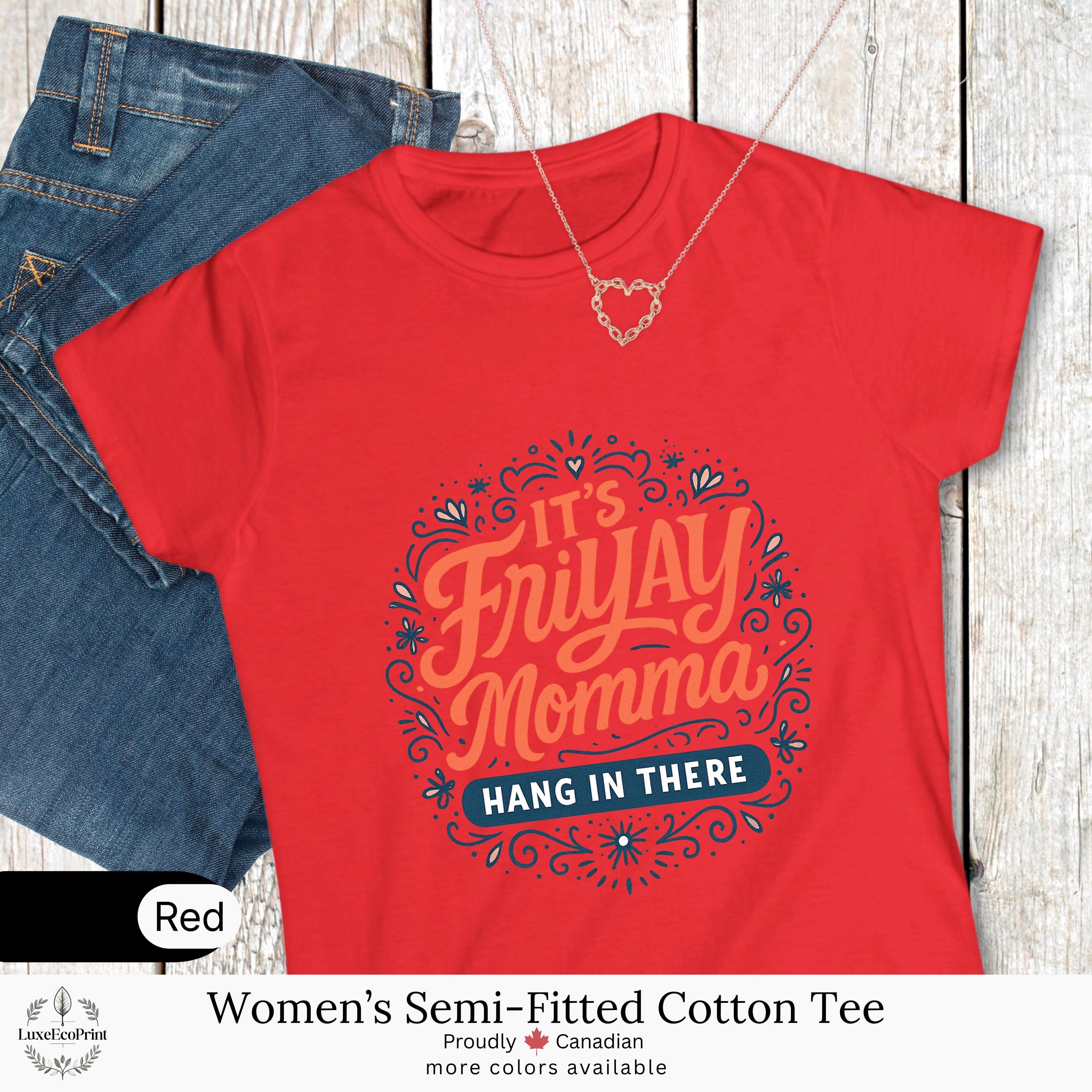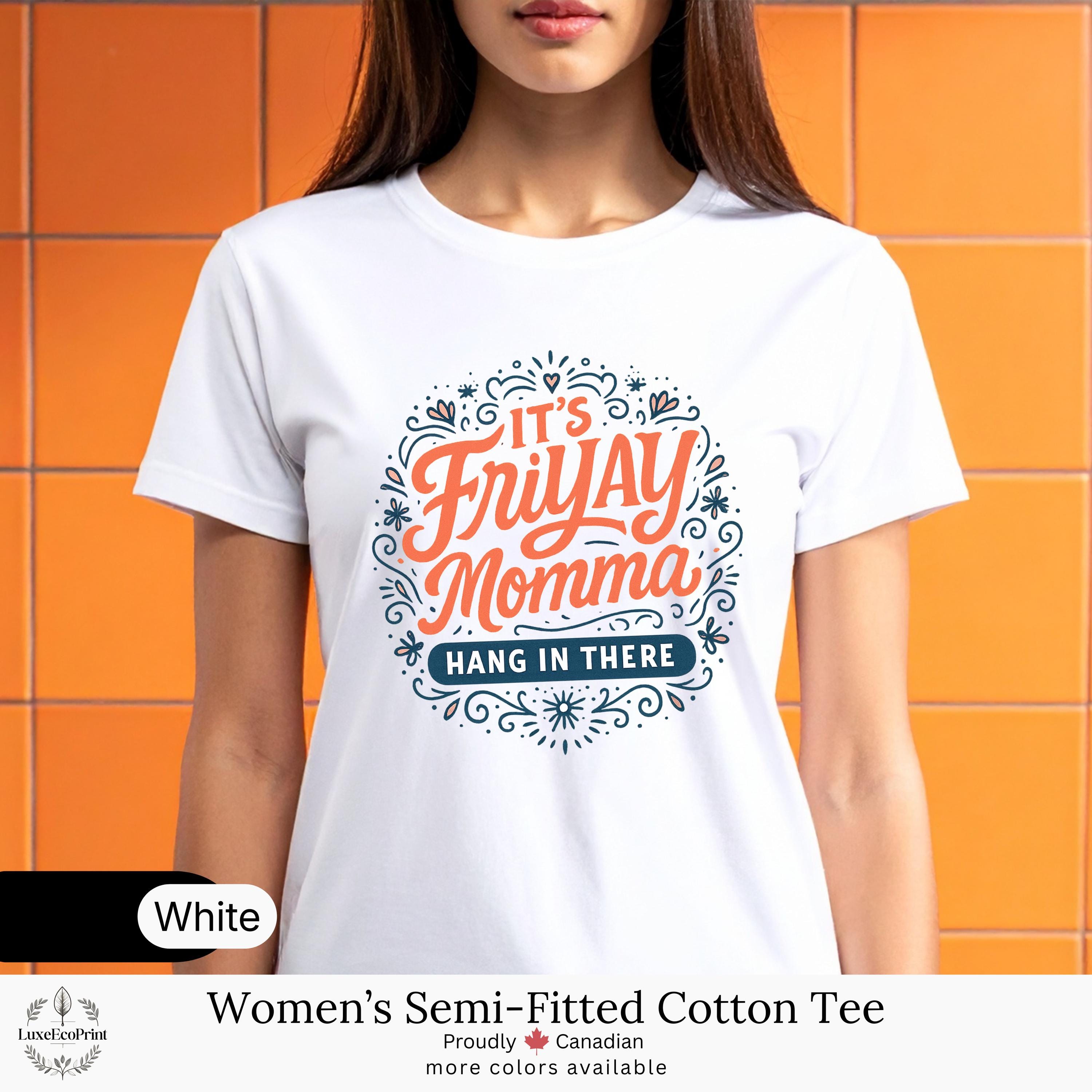 This women’s semi-fitted cotton t-shirt features an uplifting “Weekend Vibes” motivational quote, blending comfort with style for everyday Canadian fashion.