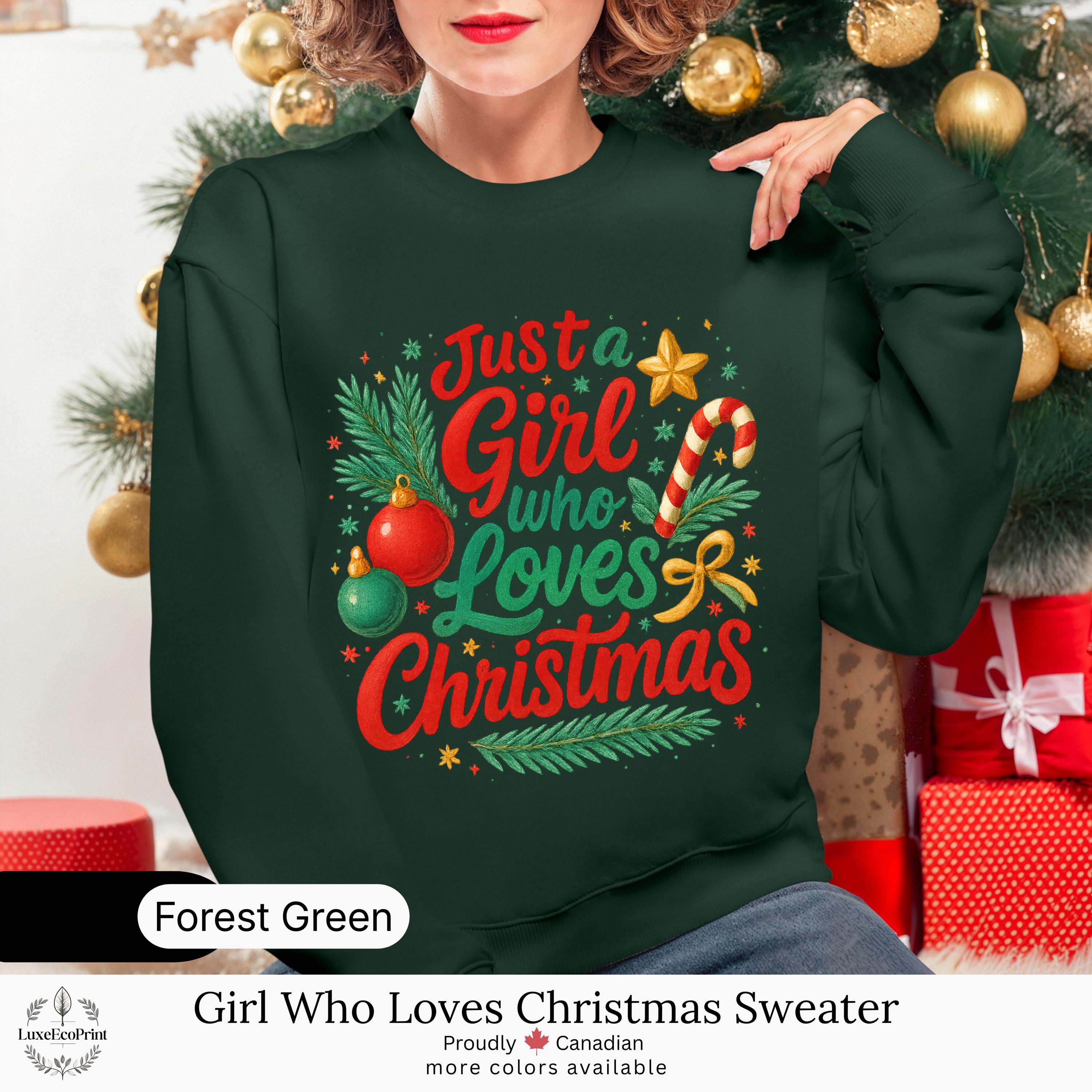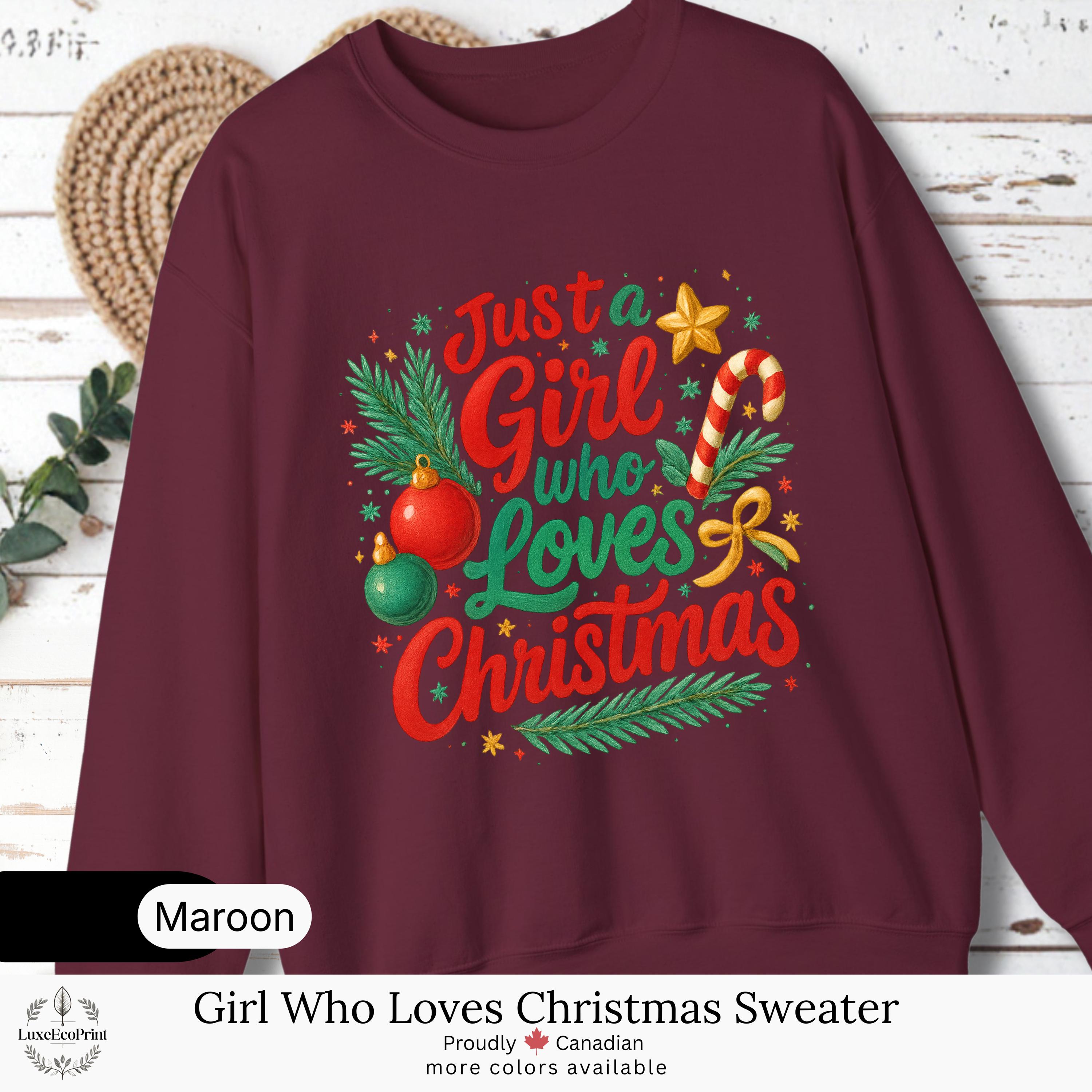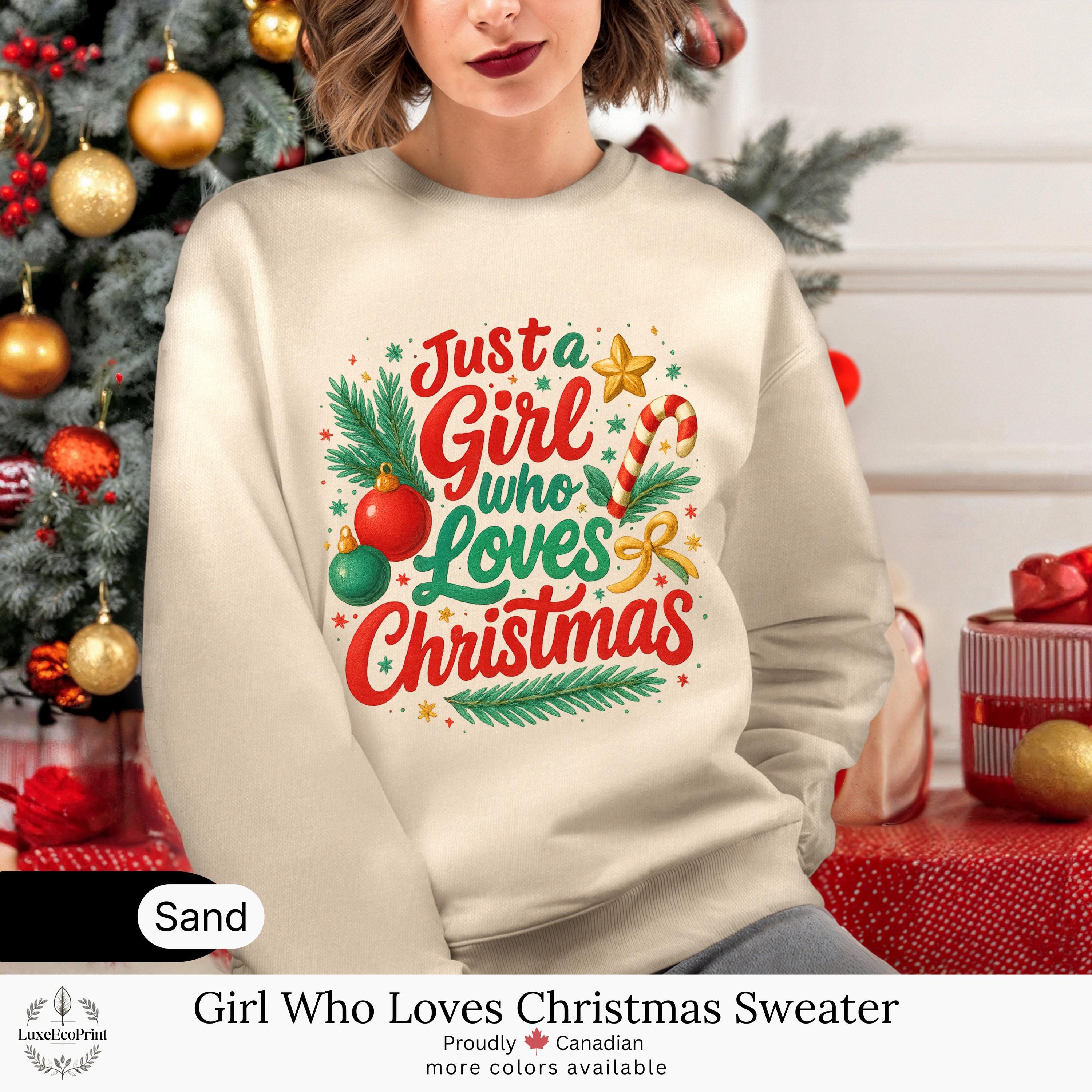 Just a Girl Who Loves Christmas Sweater | Classic Unisex-Fit Pullover, Warm Cozy Festive Holiday Sweatshirt