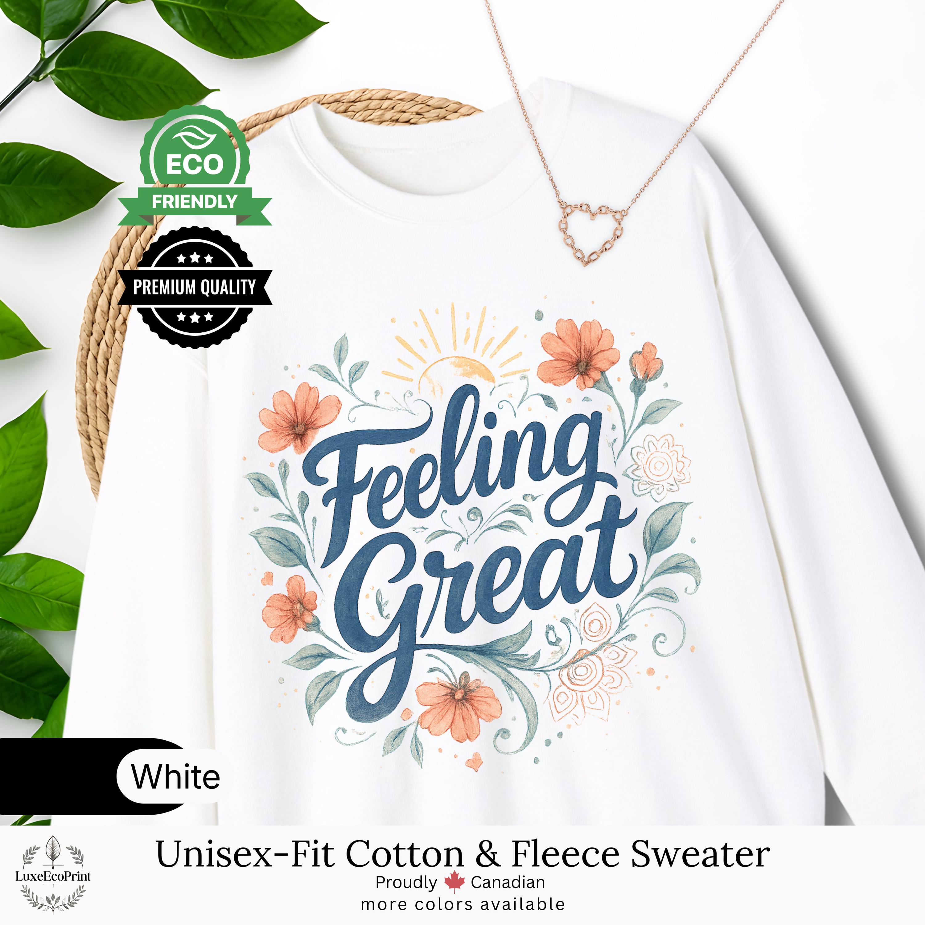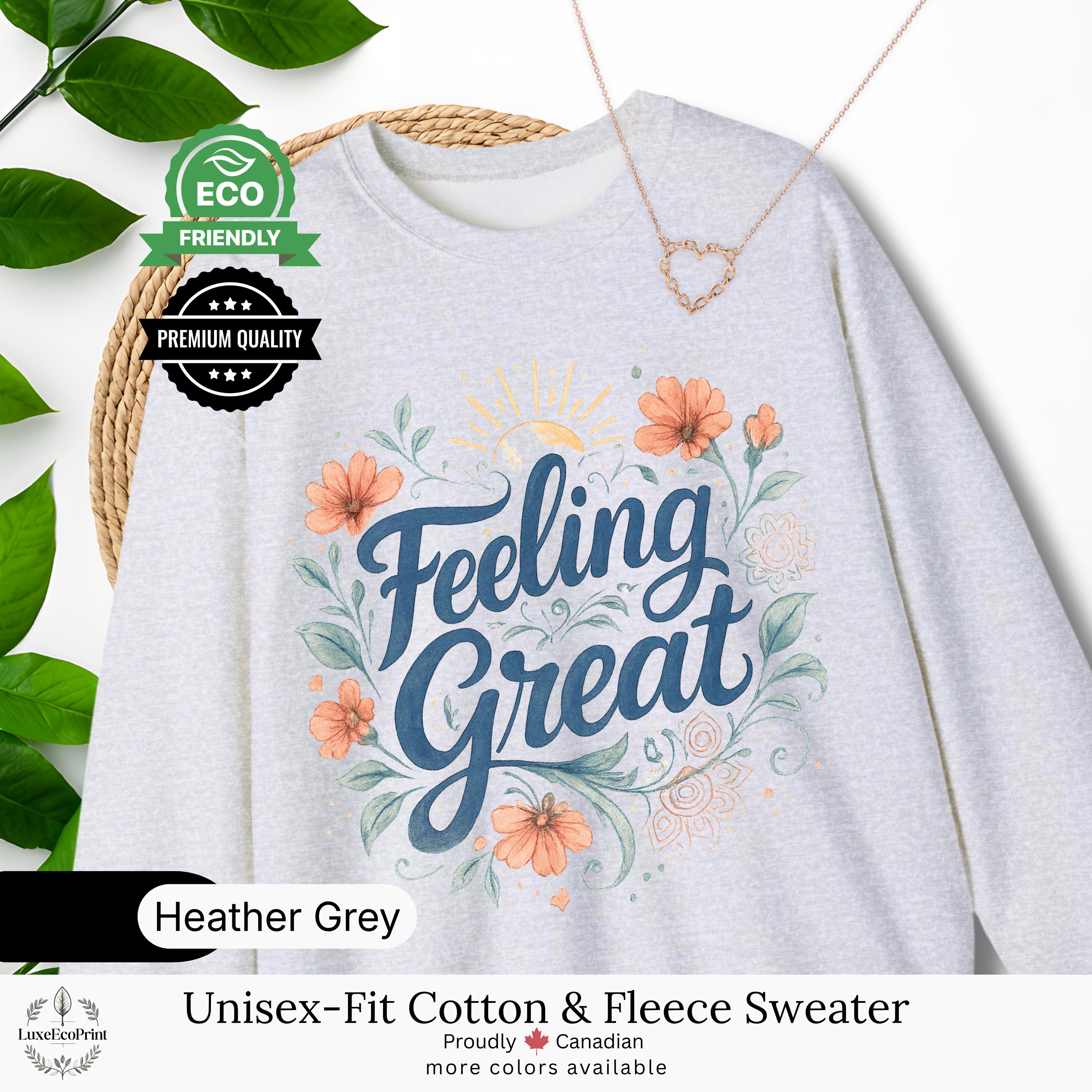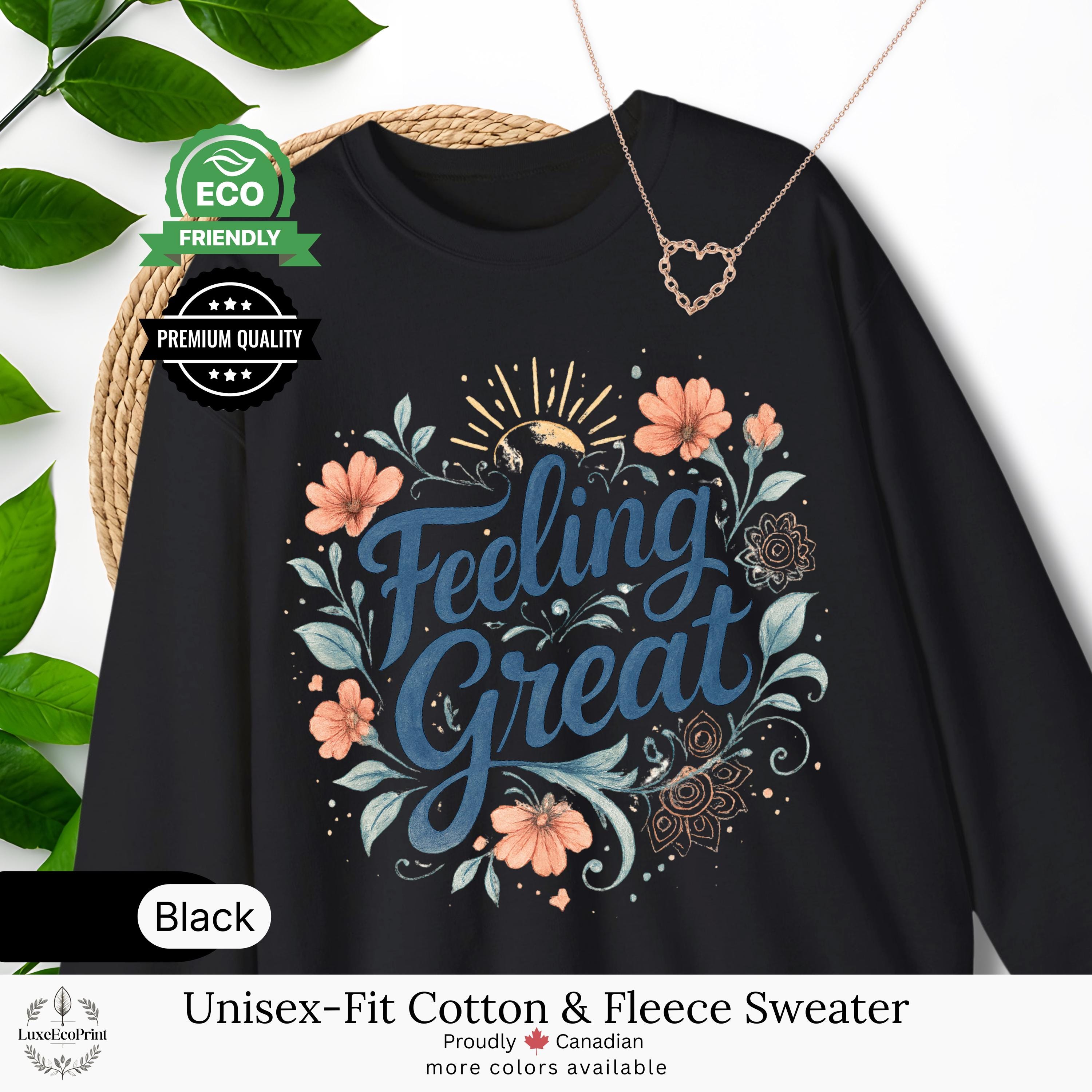 This cozy Lane Seven unisex-fit sweatshirt features the vibrant “Feeling Great” floral design - a joyful blend of self-care and Canadian comfort.