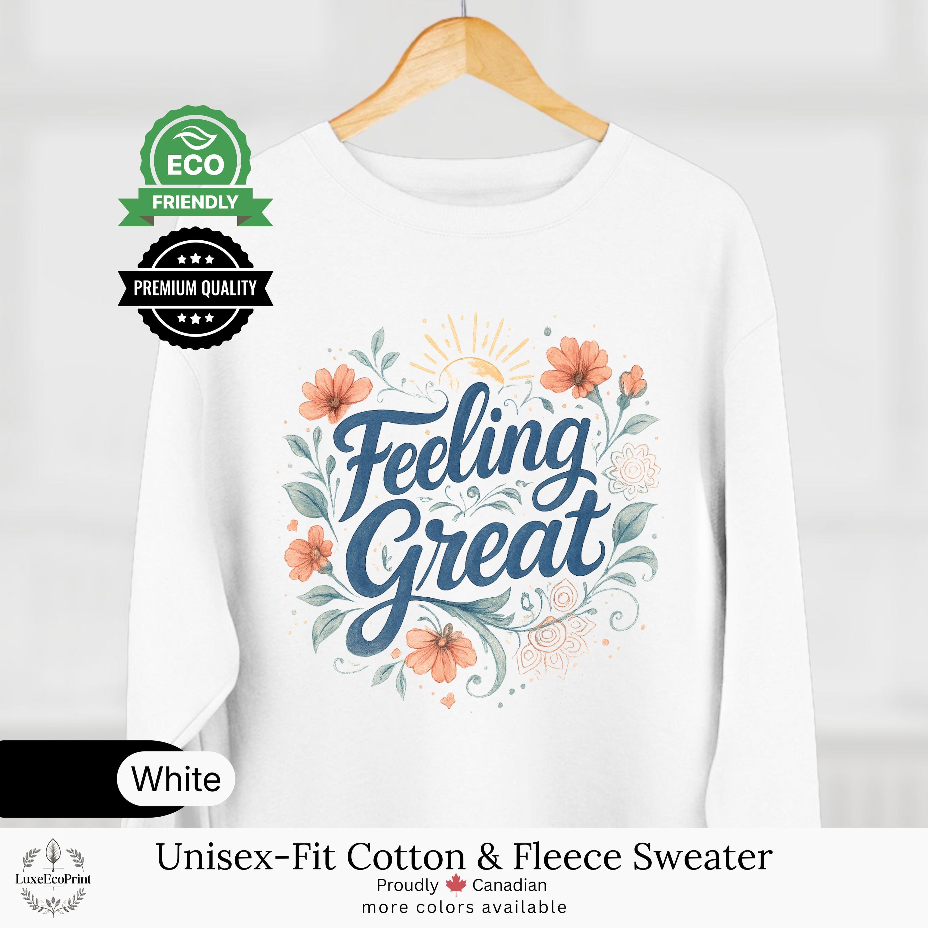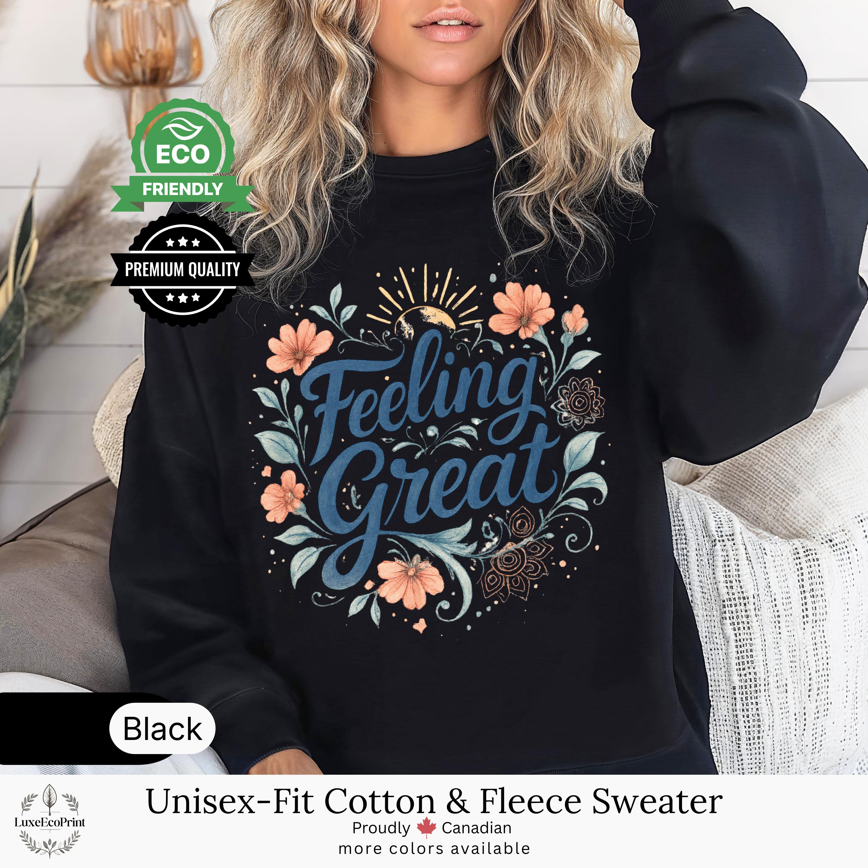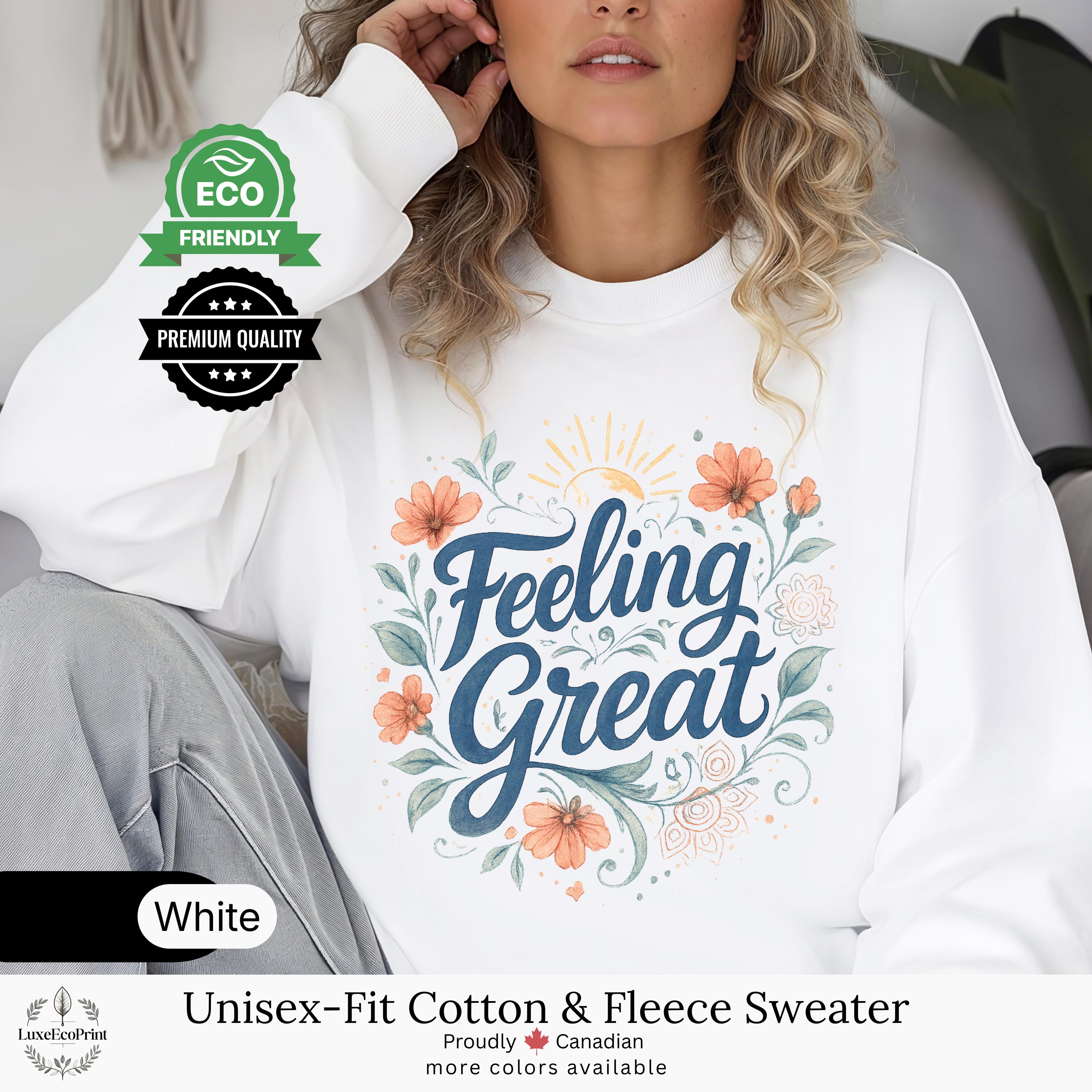 This cozy Lane Seven unisex-fit sweatshirt features the vibrant “Feeling Great” floral design - a joyful blend of self-care and Canadian comfort.