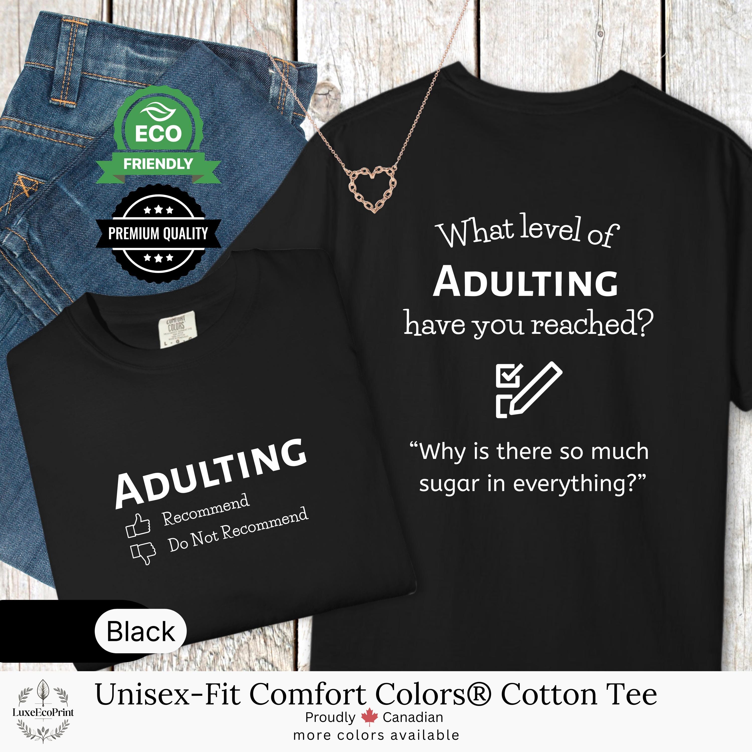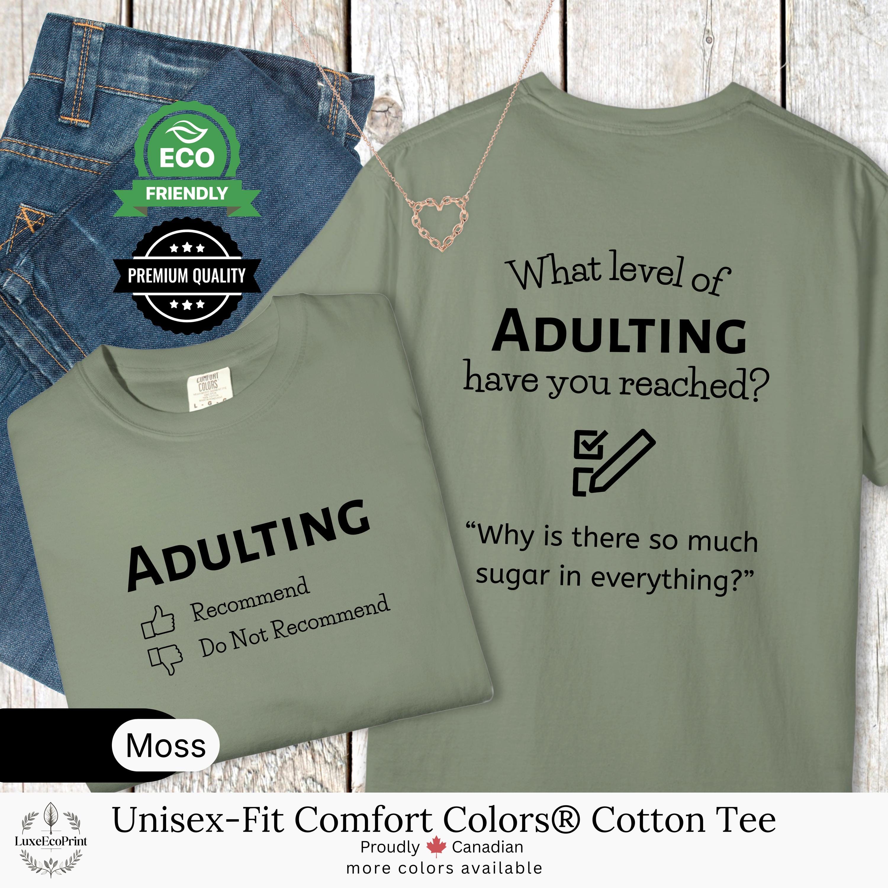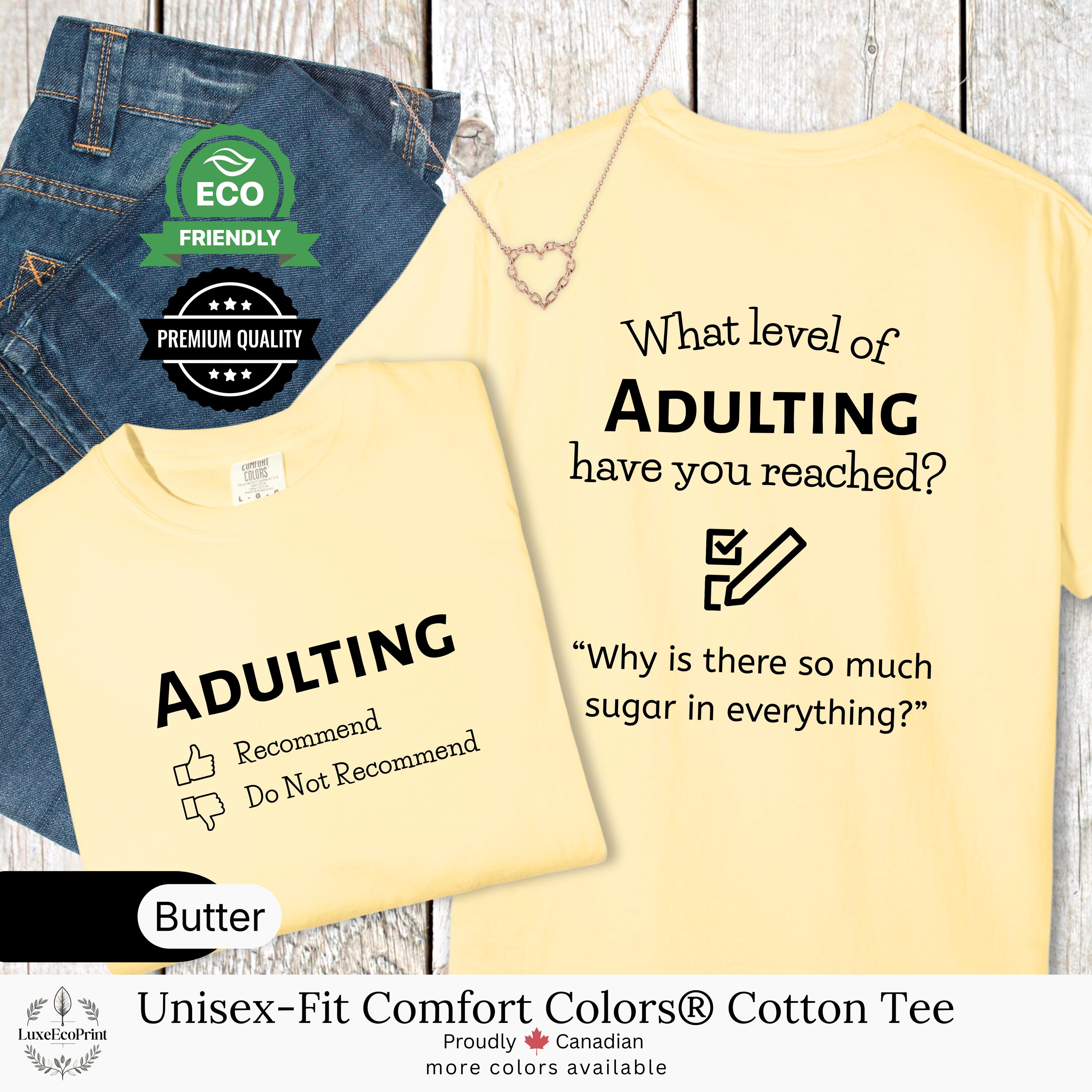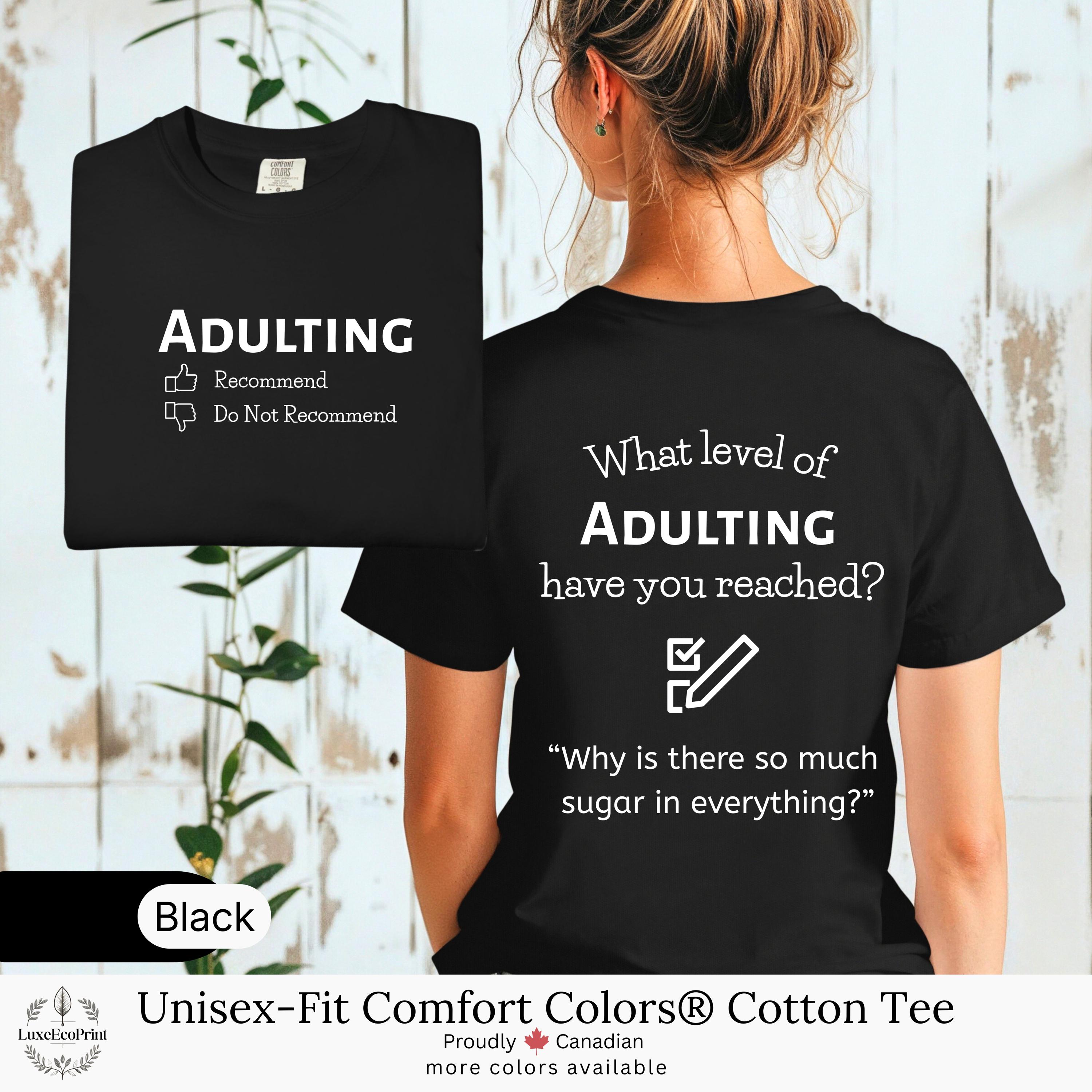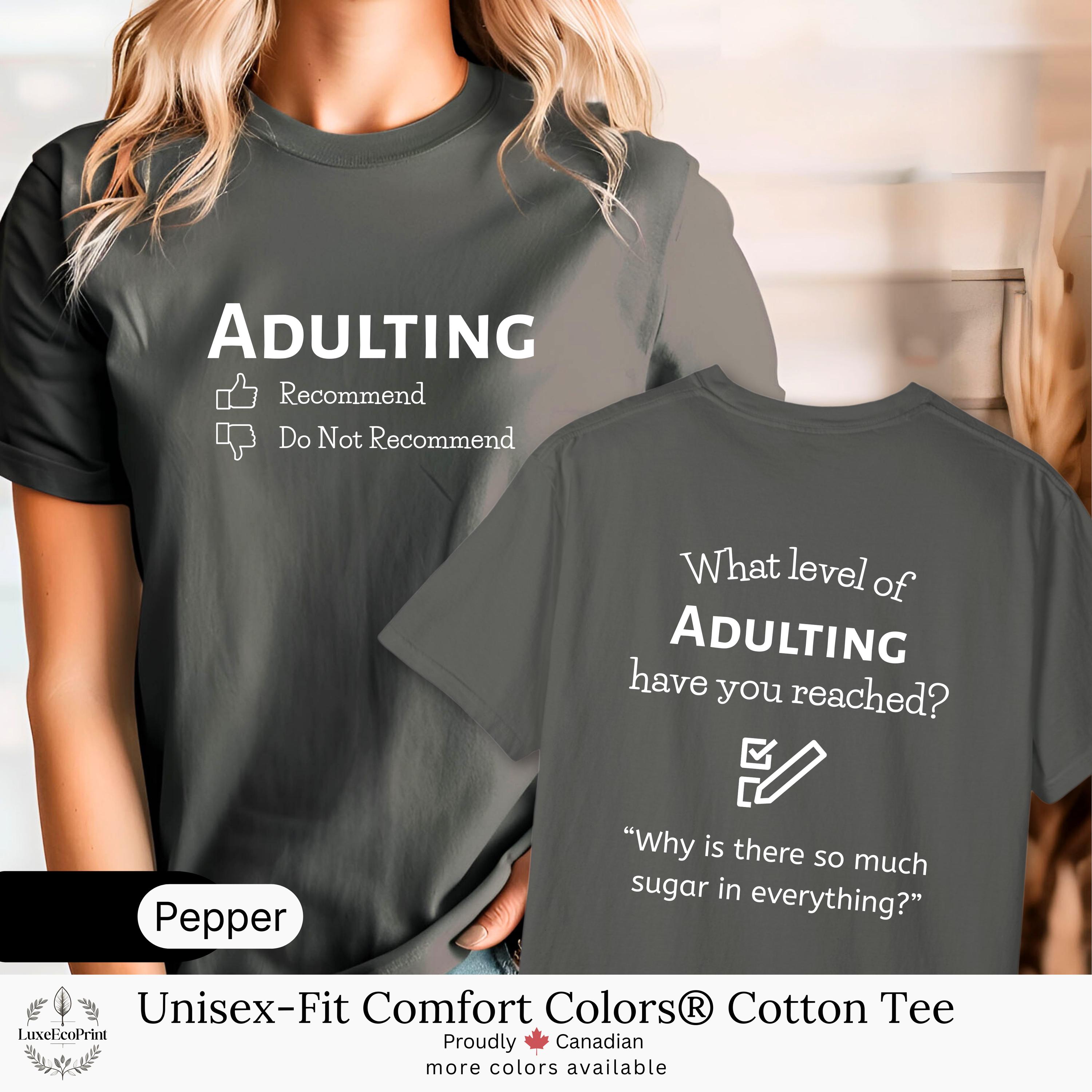 This unisex-fit Comfort Colors® cotton t-shirt features an “Adulting” checklist and quote - a witty, garment-dyed essential that blends premium comfort with personalized Canadian style.