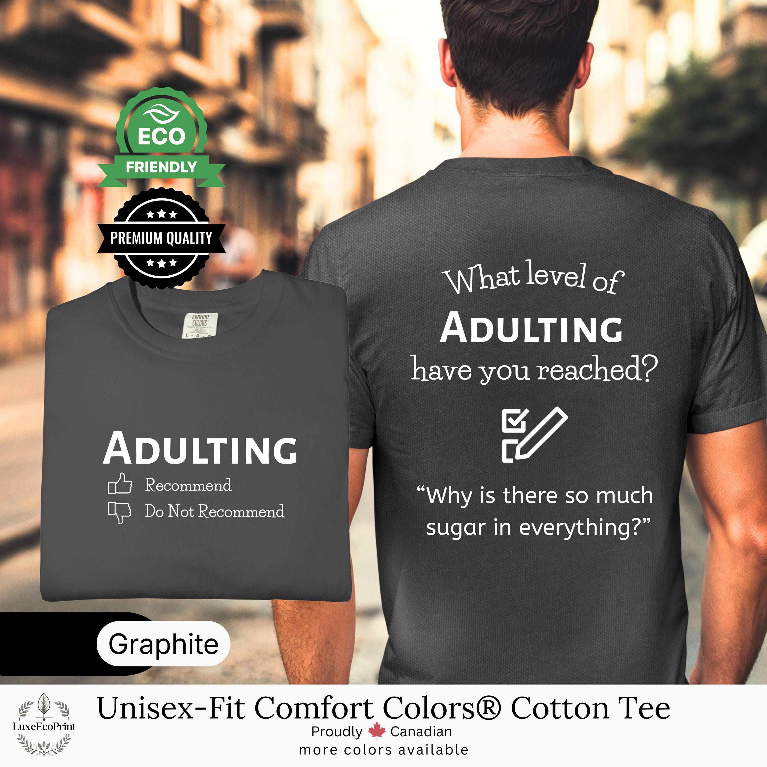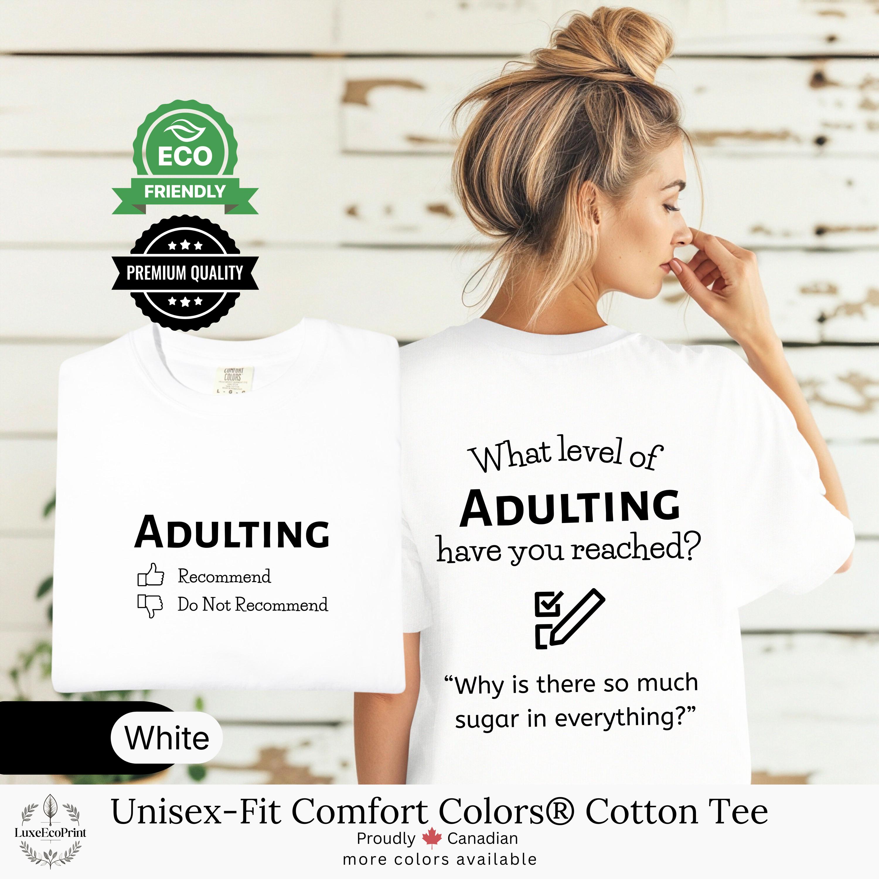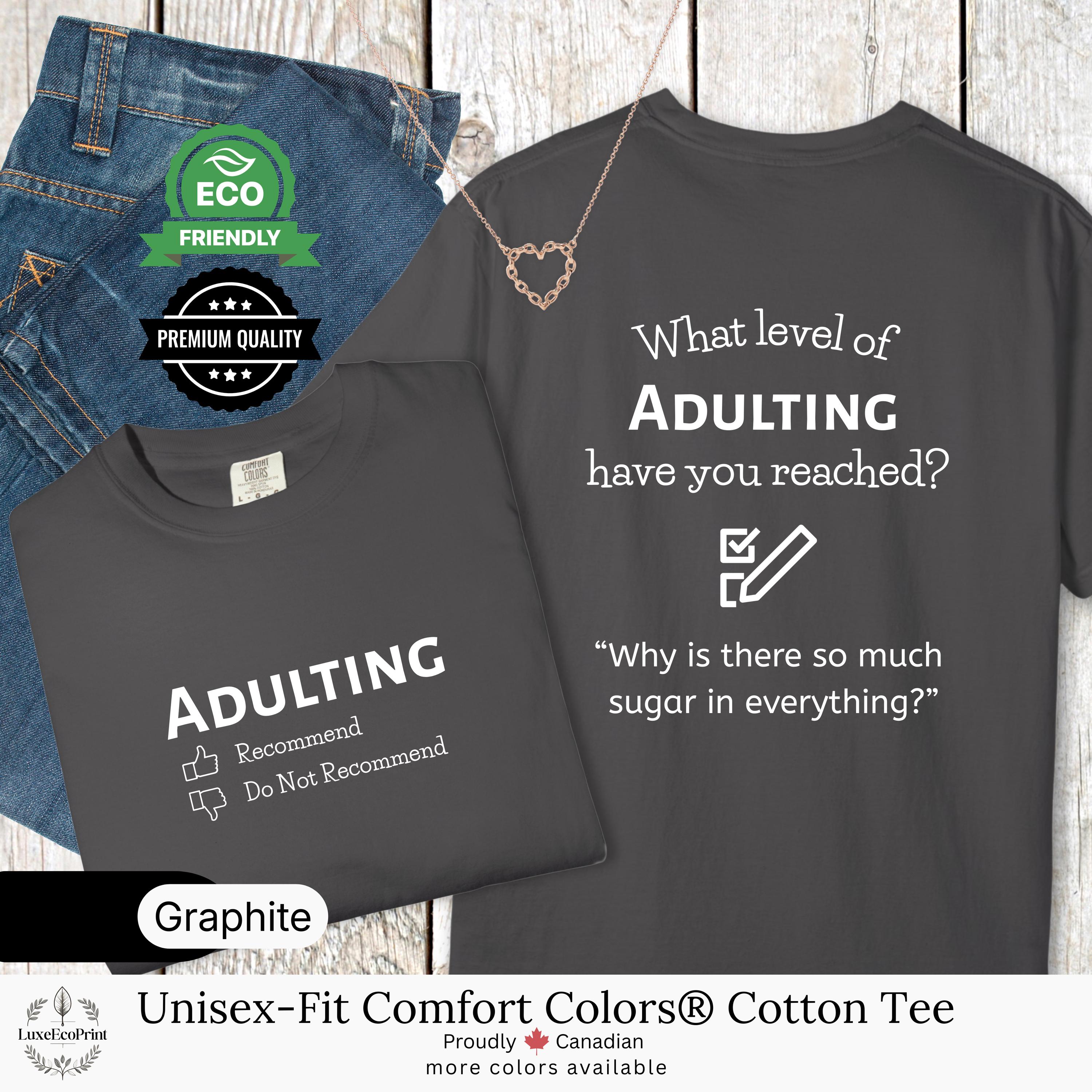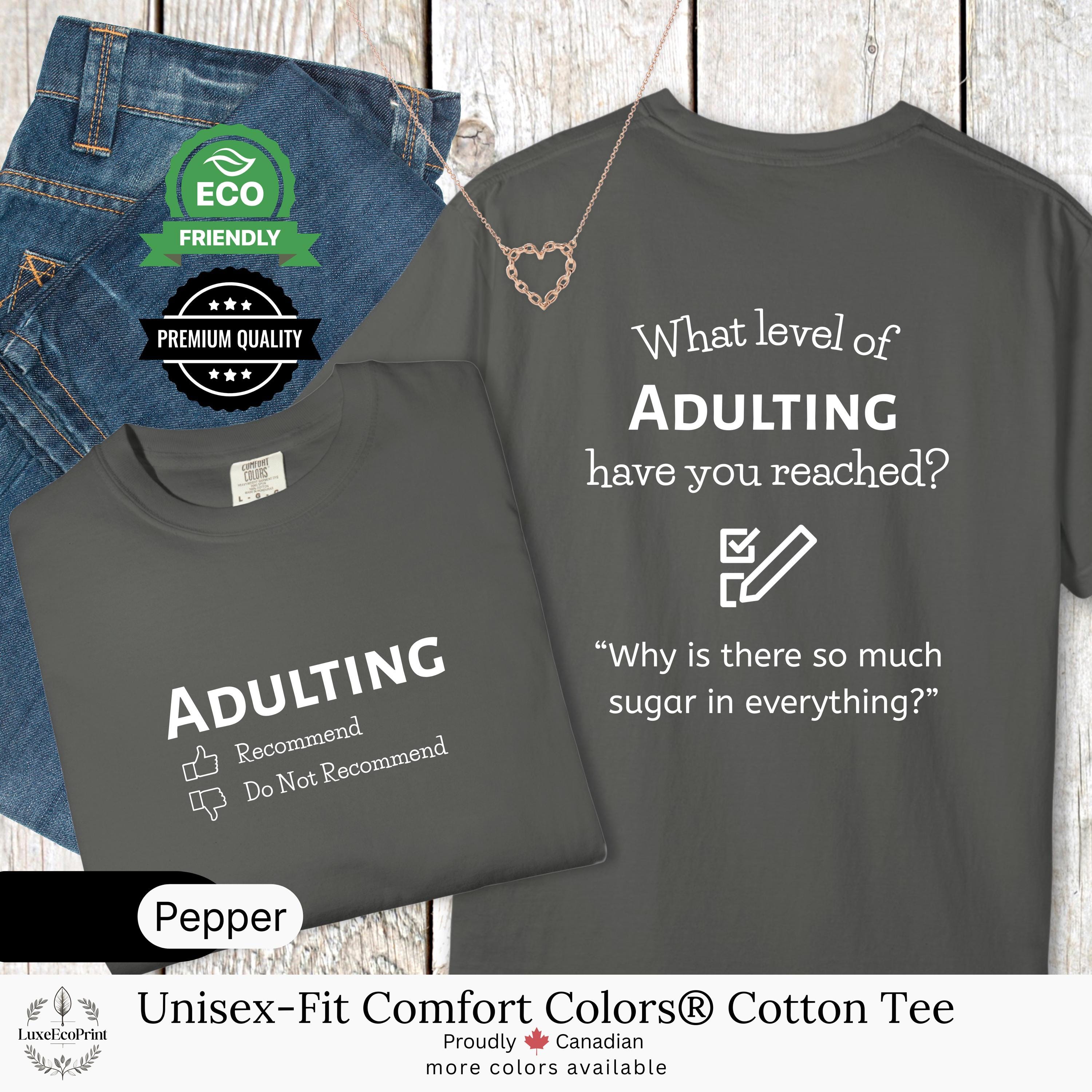 This unisex-fit Comfort Colors® cotton t-shirt features an “Adulting” checklist and quote - a witty, garment-dyed essential that blends premium comfort with personalized Canadian style.