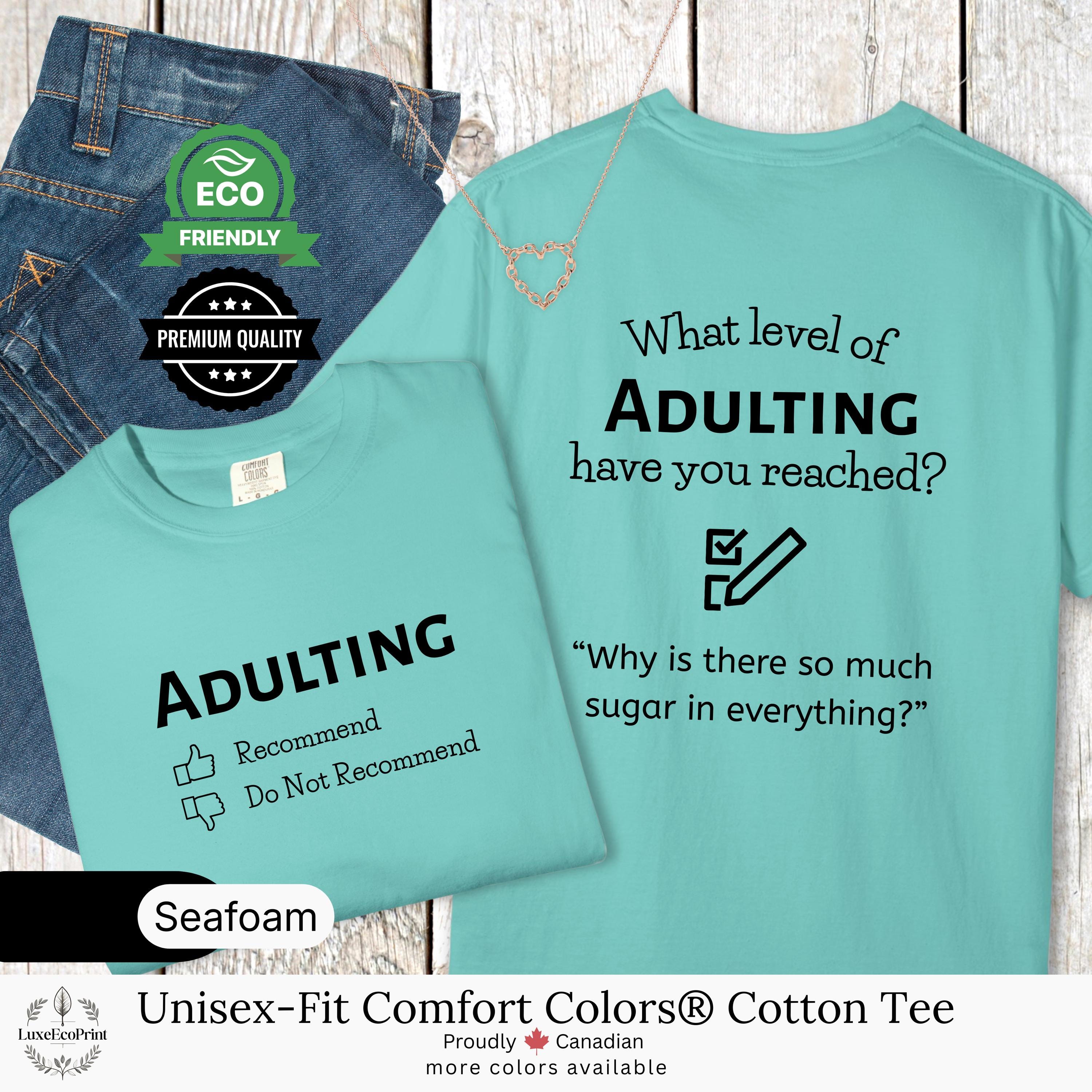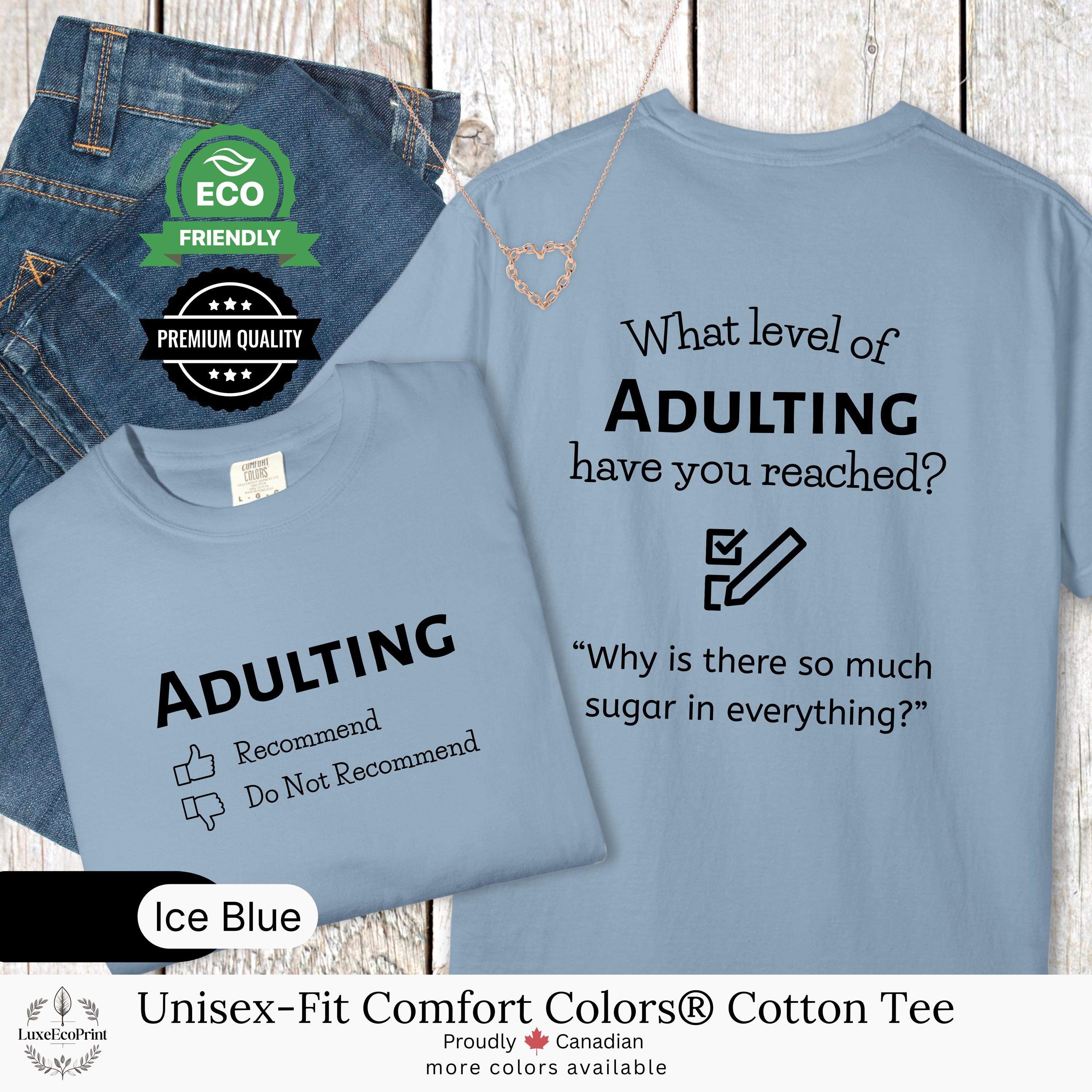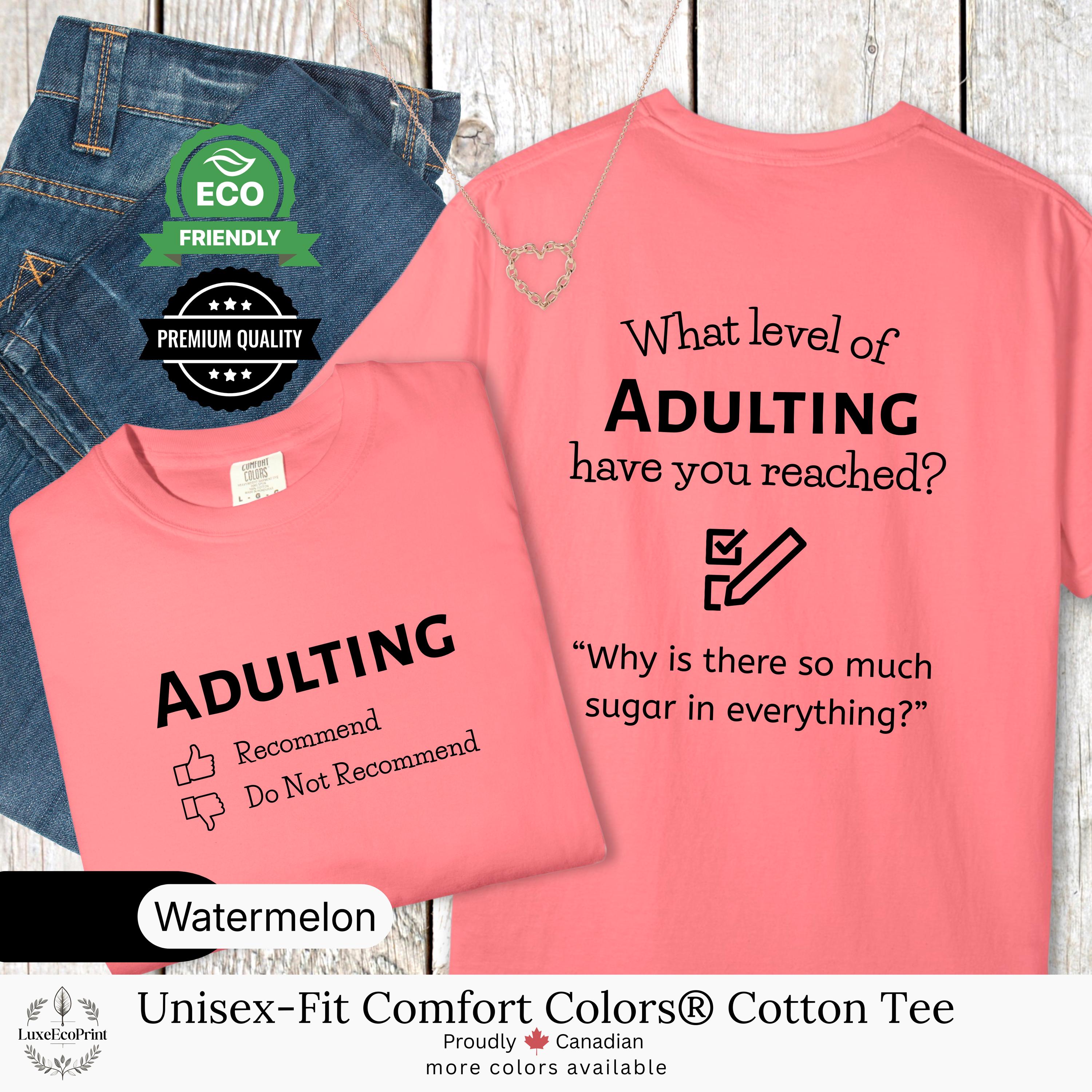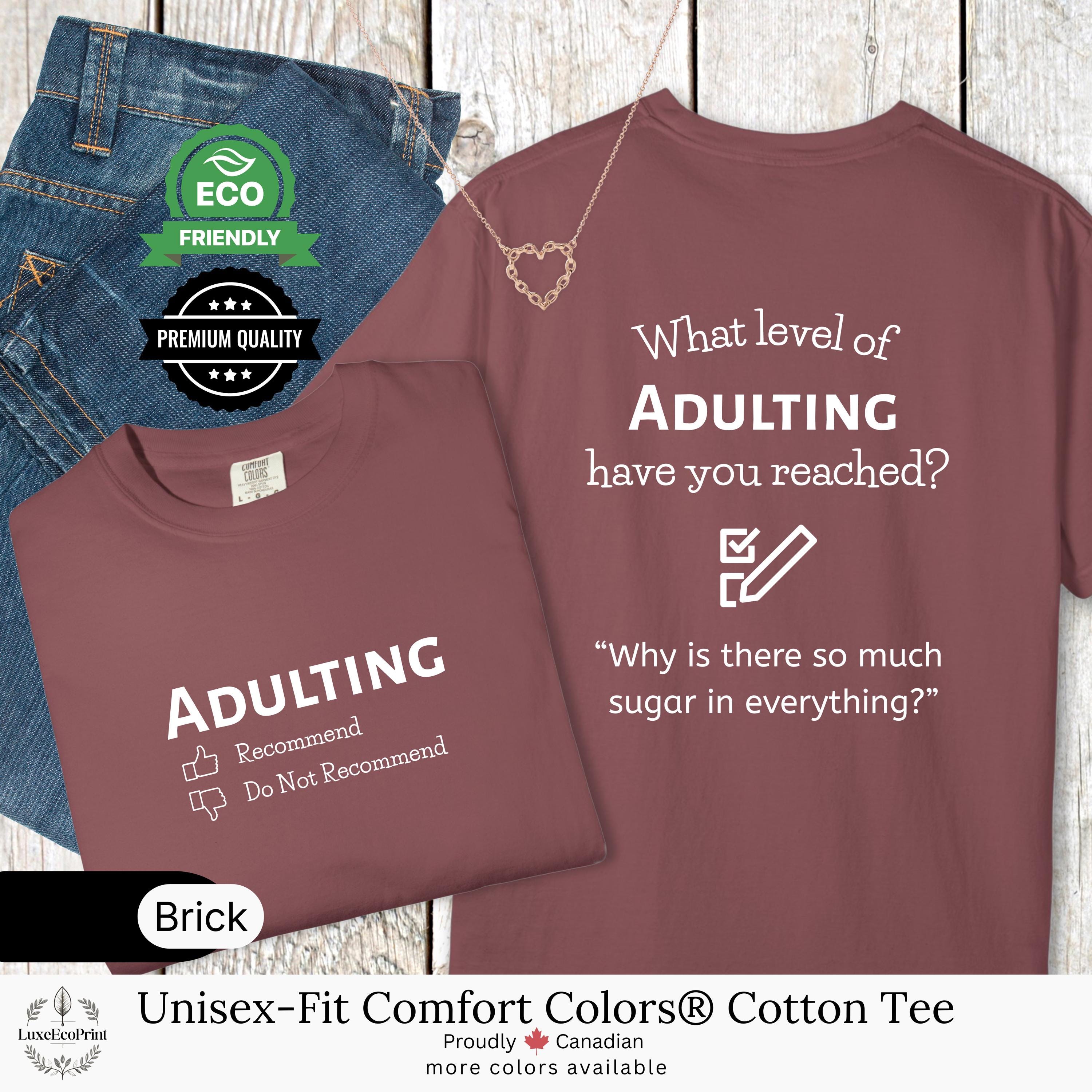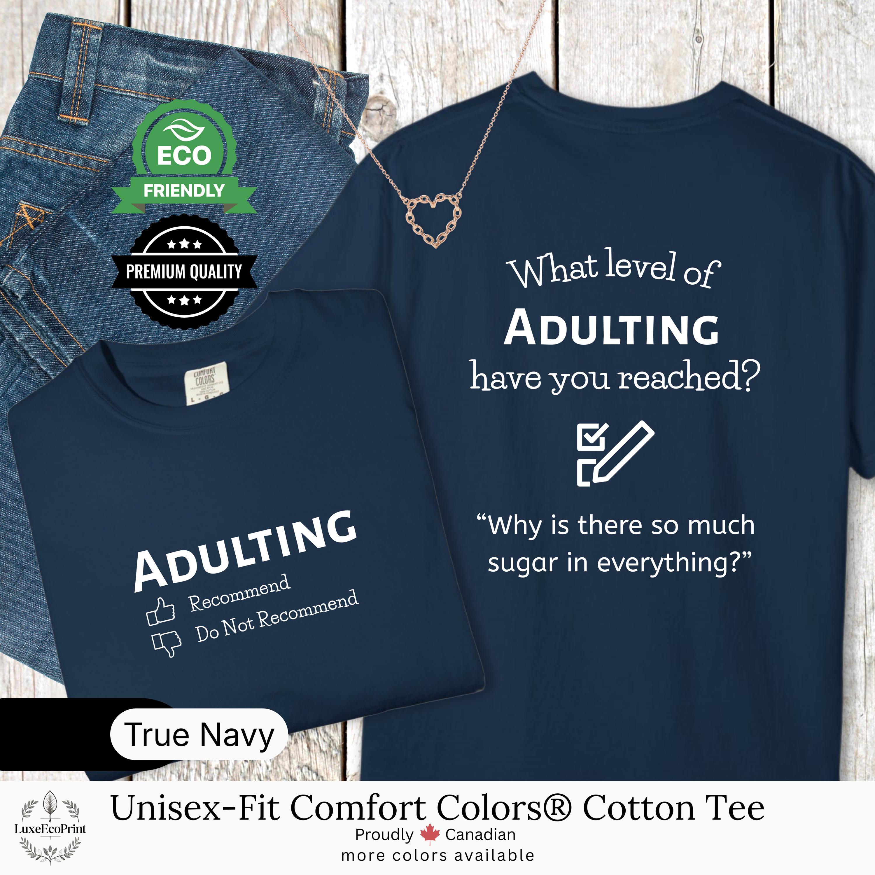 This unisex-fit Comfort Colors® cotton t-shirt features an “Adulting” checklist and quote - a witty, garment-dyed essential that blends premium comfort with personalized Canadian style.