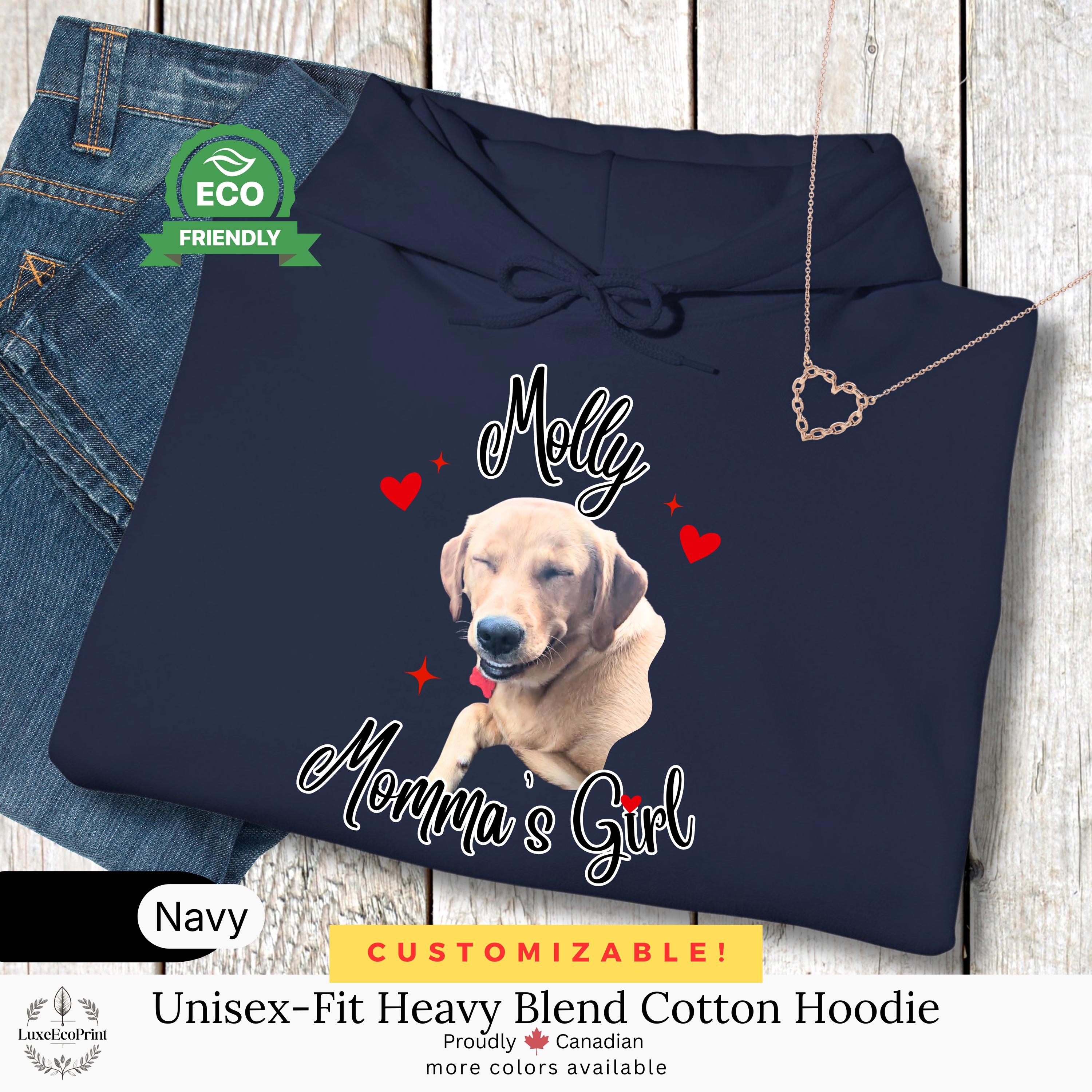 Celebrate your furry soulmate with a one-of-a-kind hoodie that’s as heartfelt as it is stylish. This fully customizable sweatshirt features your pet’s photo, name, and a personal message - just like our “Molly - Momma’s Girl” design shown here. Whether it’s a tribute, a gift, or a cozy reminder of your best friend, this hoodie turns love into wearable art.